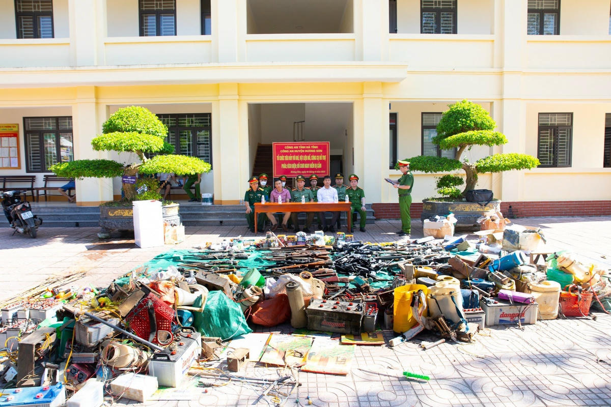 Ngày 2/6, nguồn tin từ Công an huyện Hương Sơn (Hà Tĩnh), đơn vị vừa tiêu hủy số lượng lớn vũ khí, vật liệu nổ, công cụ hỗ trợ, pháo, kích điện, đồ chơi nguy hiểm bị cấm.