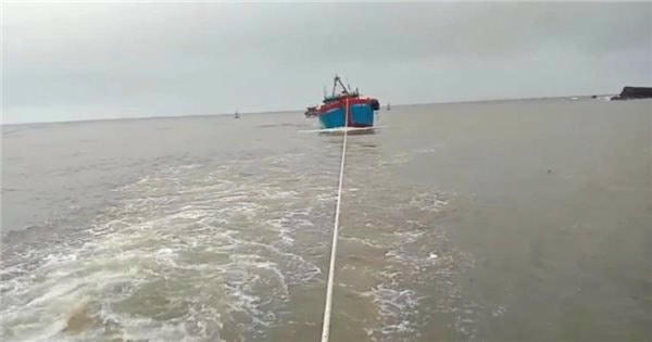 Lực lượng chức năng đã tìm thấy chiếc thuyền cá chở 5 ngư dân ở huyện Lộc Hà (tỉnh Hà Tĩnh) bị mất liên lạc, hiện đang lai dắt vào bờ.