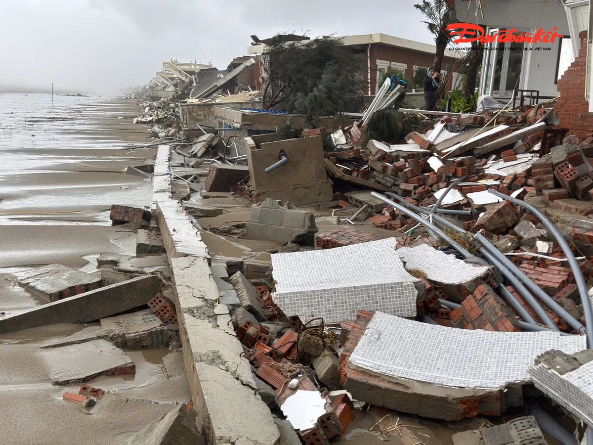 Cụ thể, Dự án Khu dịch vụ và nhà nghỉ Xuân Thành tại xã Tiên Điền và xã Cổ Đạm do Công ty Cổ phần Hồng Lam Xuân Thành làm chủ đầu tư có 23 căn biệt thự nằm tiếp giáp khu vực kè biển bị hư hỏng, đổ sập; một số hạng mục công trình khác như kè biển, bể bơi và tường rào cũng bị hư hỏng nghiêm trọng.