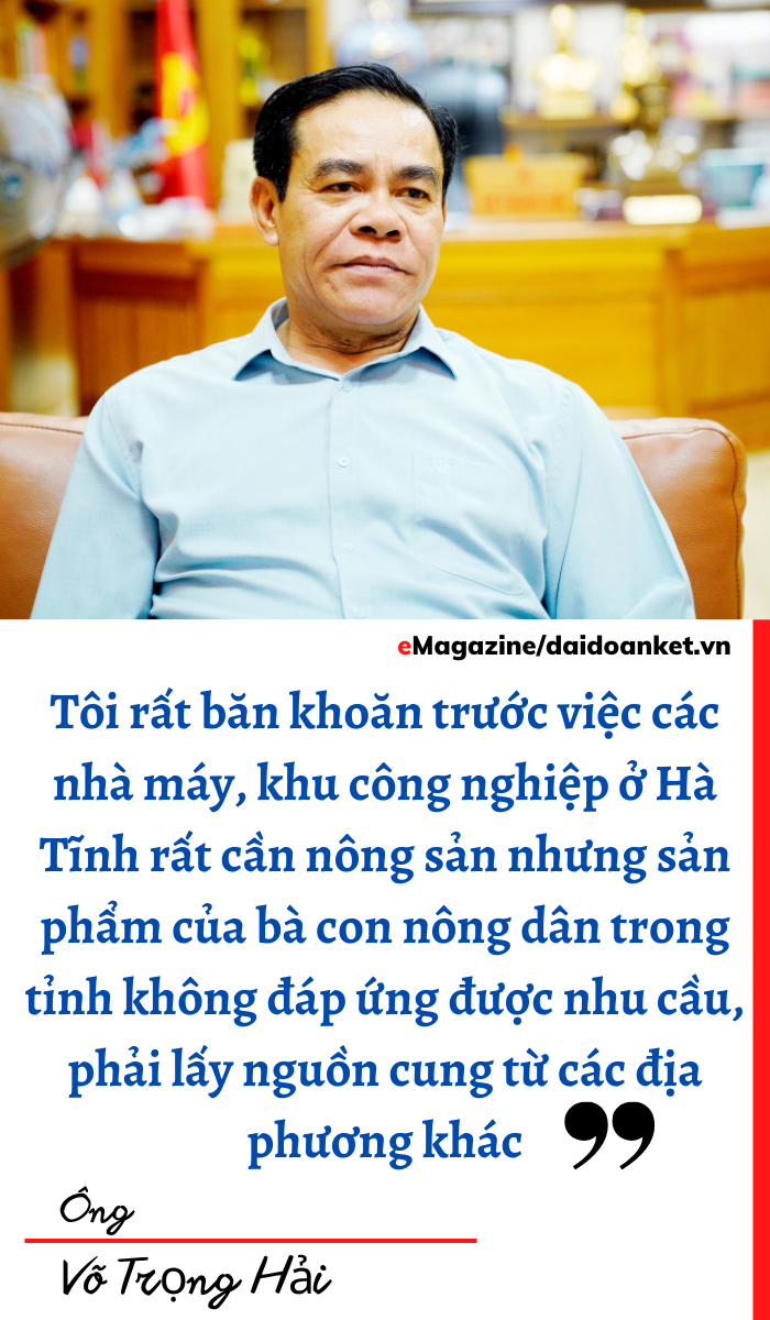 Chúng tôi thực hiện cuộc phỏng vấn này vào giờ trưa, khi ông Võ Trọng Hải mới trở về từ chuyến công tác ở Hà Nội vào lúc 2h sáng và vừa kết thúc một cuộc họp quan trọng do ông chủ trì. Lần đầu tiên với cương vị Chủ tịch UBND tỉnh Hà Tĩnh, người từng được mệnh danh là “khắc tinh” của tội phạm chia sẻ về bài toán phát triển kinh tế với báo chí. Những kế hoạch có tính chiến lược về thu hút đầu tư được xem là “kim chỉ nam” để Hà Tĩnh thực hiện được ông Võ Trọng Hải chia sẻ thẳng thắn.