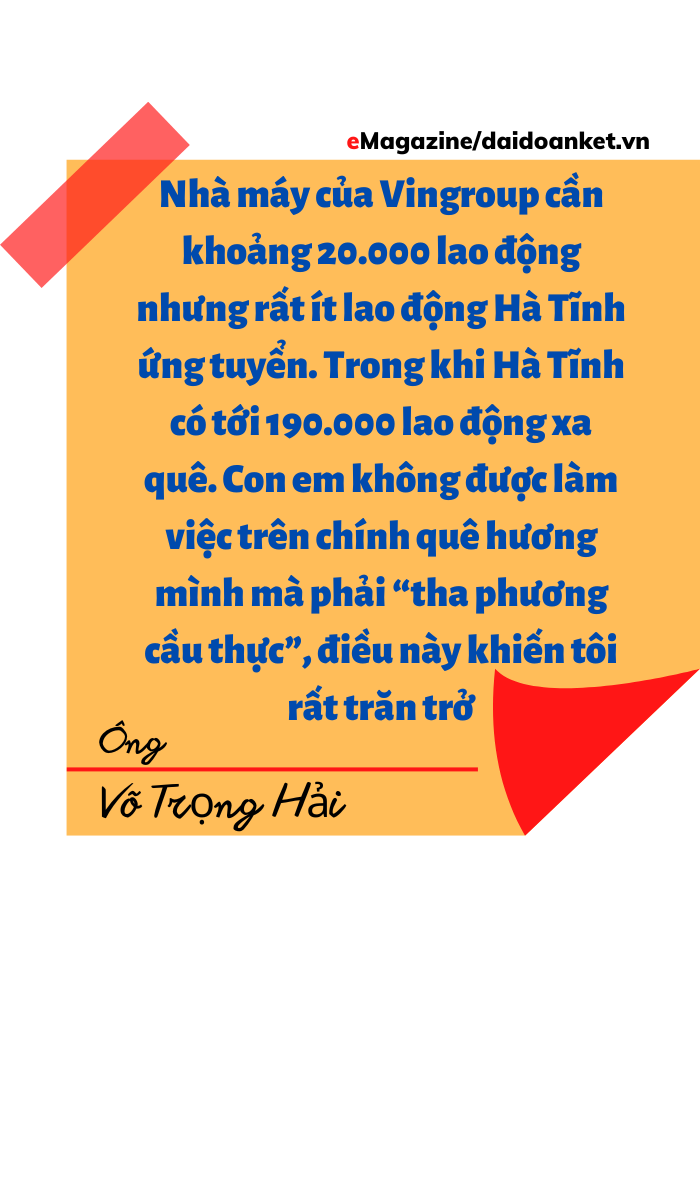 Ông Võ Trọng Hải, Chủ tịch UBND tỉnh Hà Tĩnh khẳng định: Quan điểm xuyên suốt của Hà Tĩnh là lấy người dân, doanh nghiệp làm trọng, cán bộ là công bộc, là những người phục vụ dân, phục vụ doanh nghiệp. Để Hà Tĩnh phát triển nhanh, mạnh, bền vững, cần tiếp tục thay đổi môi trường và chiến lược thu hút đầu tư. Như Thủ tướng Chính phủ đã nói: “Muốn thu hút được đại bàng thì cần phải có tổ cho đại bàng ở”. Hà Tĩnh sẽ “xây tổ” để đón “đại bàng”.