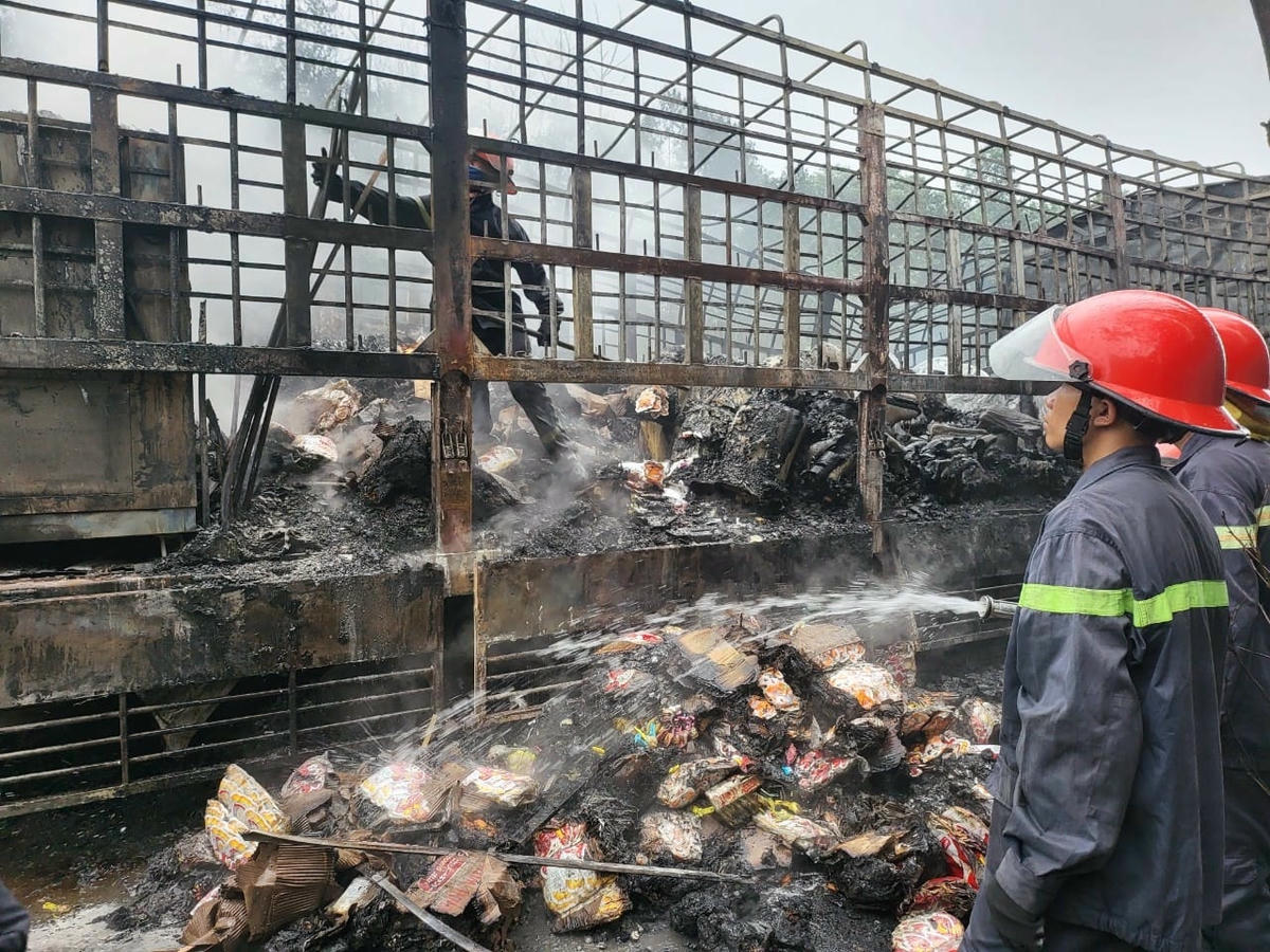 Do trên xe chở bánh kẹo và các cuộn nilon nên lửa bùng phát dữ dội, khoảng 20 phút sau lực lượng chữa cháy mới khống chế được ngọn lửa.