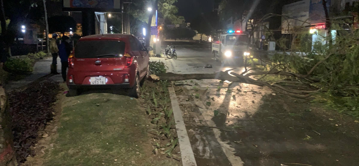 Khi đến trước cửa số nhà 35 đường Bạch Đằng thì bất ngờ mất lái lao lên vỉa hè rồi húc đổ 1 gốc cây xanh.