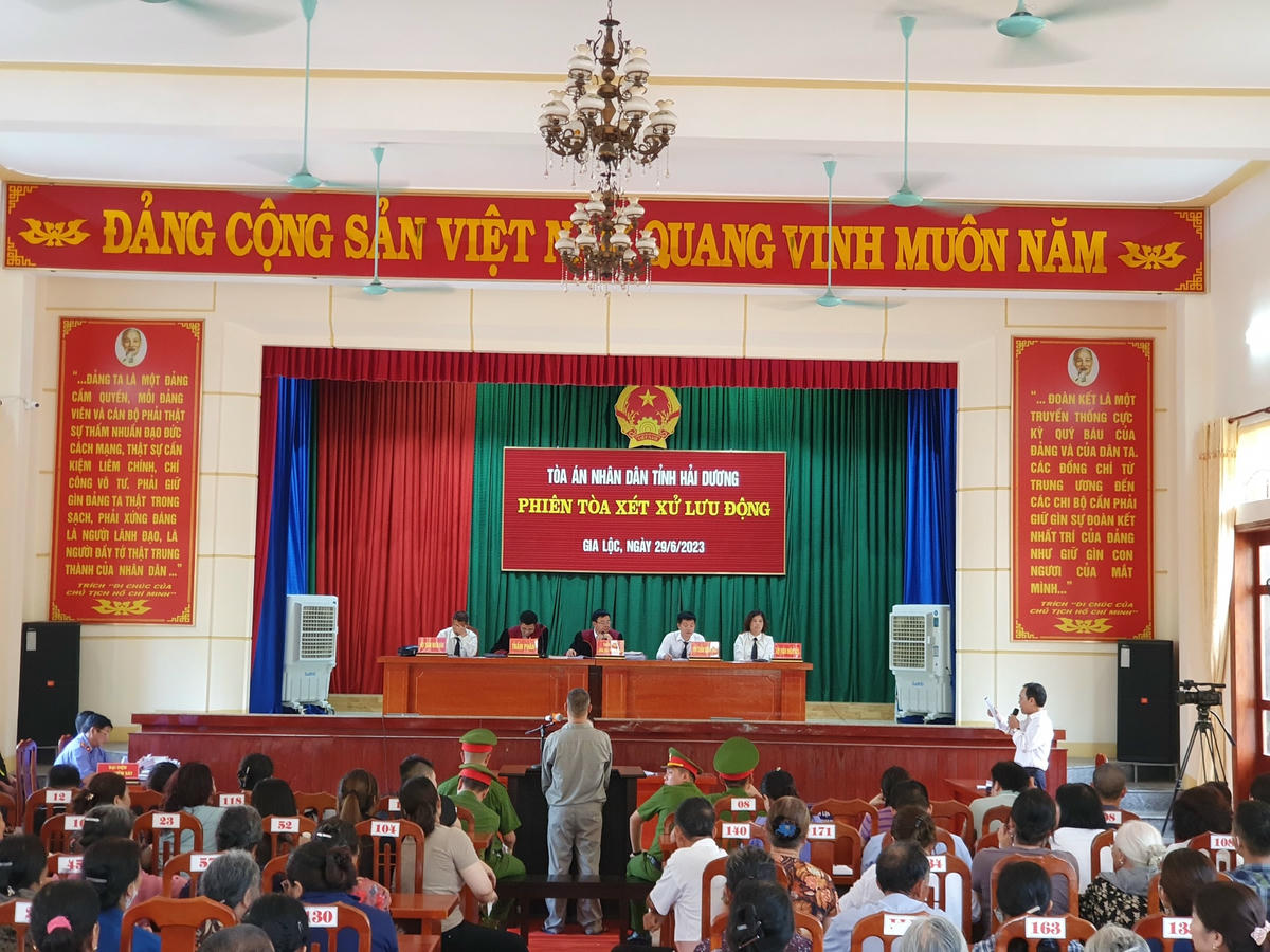 Phiên tòa xét xử lưu động được tổ chức tại Hội trường UBND xã Gia Khánh, thu hút đông đảo quần chúng nhân dân tham dự, theo dõi.