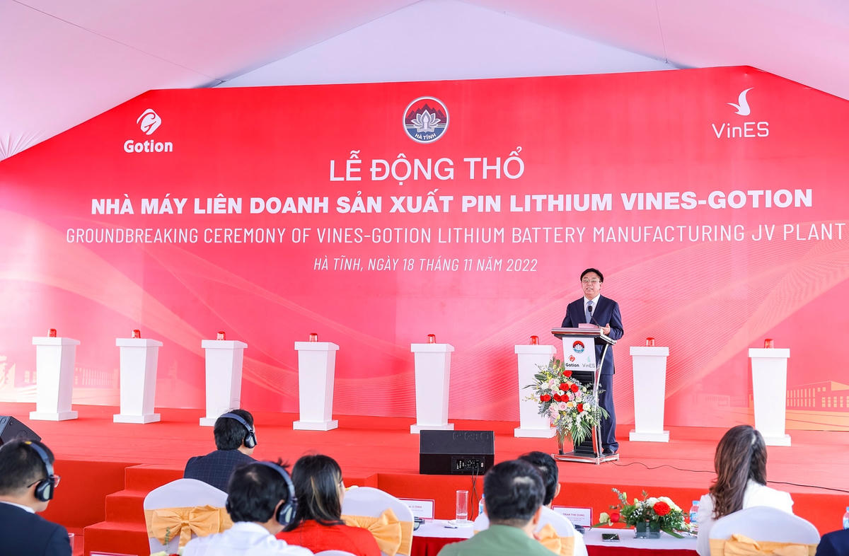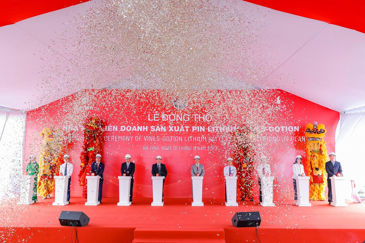 Sáng 18/11, tại Khu kinh tế Vũng Áng (thị xã Kỳ Anh, Hà Tĩnh), 2 “ông lớn” Công ty Cổ phần Giải pháp Năng lượng VinES (thành viên Tập đoàn Vingroup) và Công ty Gotion, Inc. (thành viên Gotion High-Tech) động thổ Dự án Nhà máy sản xuất cell pin sạc LFP tại Khu Kinh tế Vũng Áng (Hà Tĩnh).