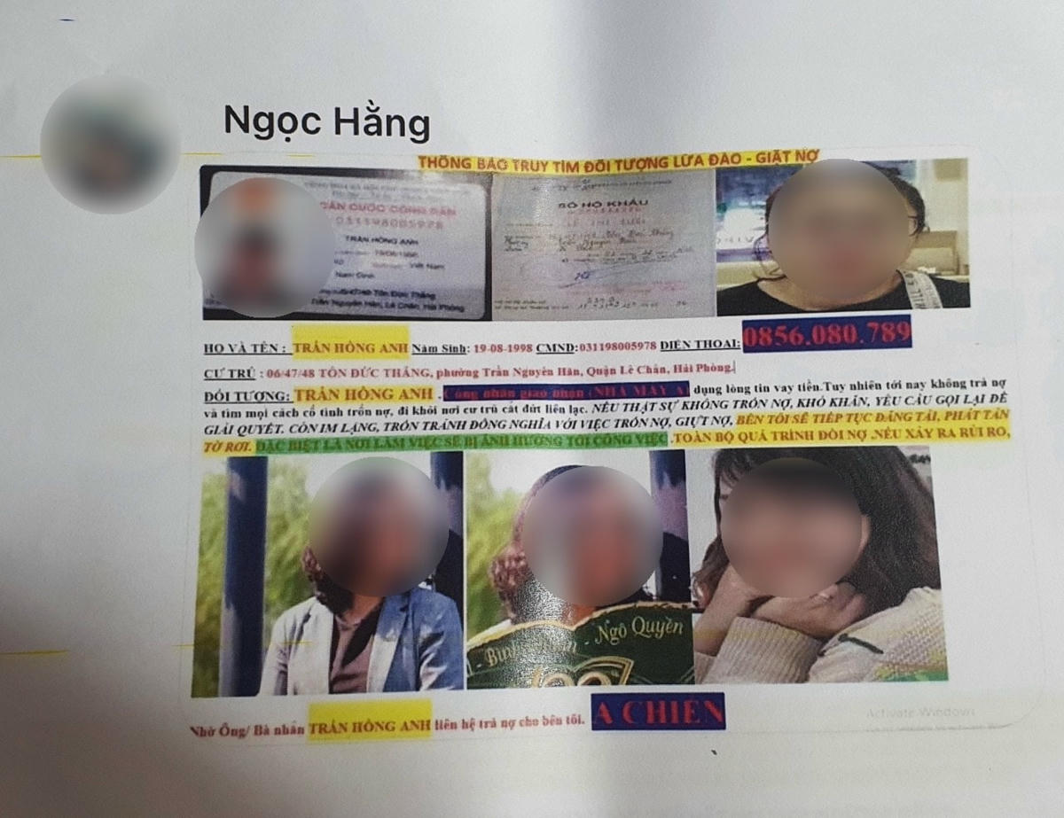 Chưa hết, những đối tượng này còn thường xuyên gọi điện vào đêm khuya, trong giờ làm việc để hối thúc các chị có trách nhiệm nhắc nhở người vay trả tiền. Thậm chí, khi bị từ chối hỗ trợ, không nghe điện thoại thì các chị còn bị ghép ảnh, đưa lên mạng xã hội với tít “Thông báo truy tìm đối tượng lừa đảo, giật nợ”…
