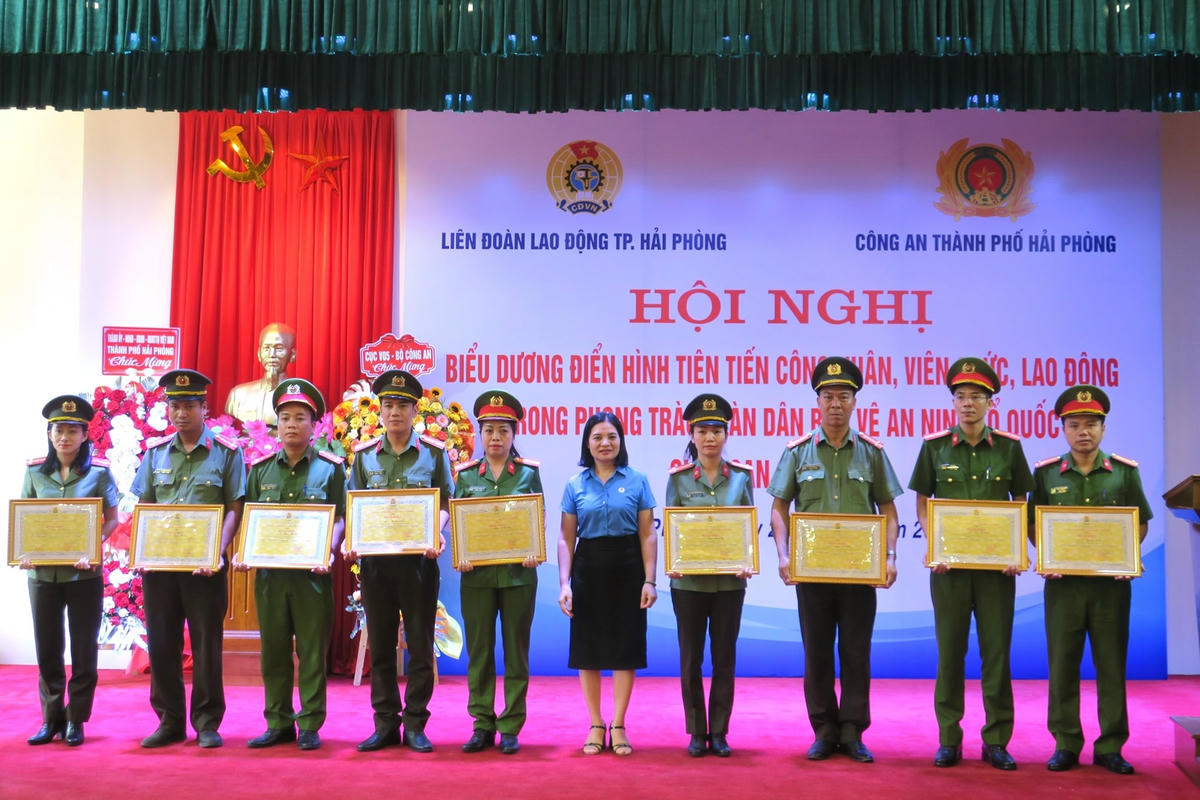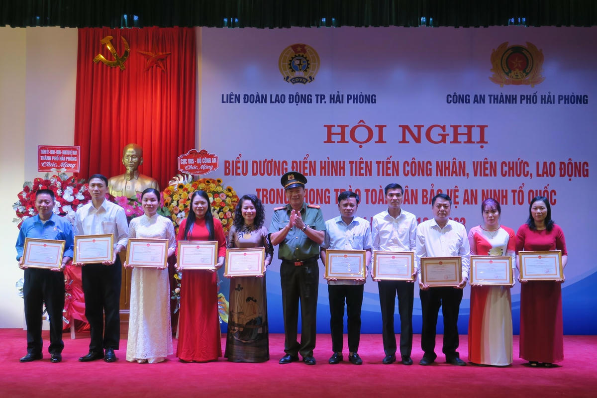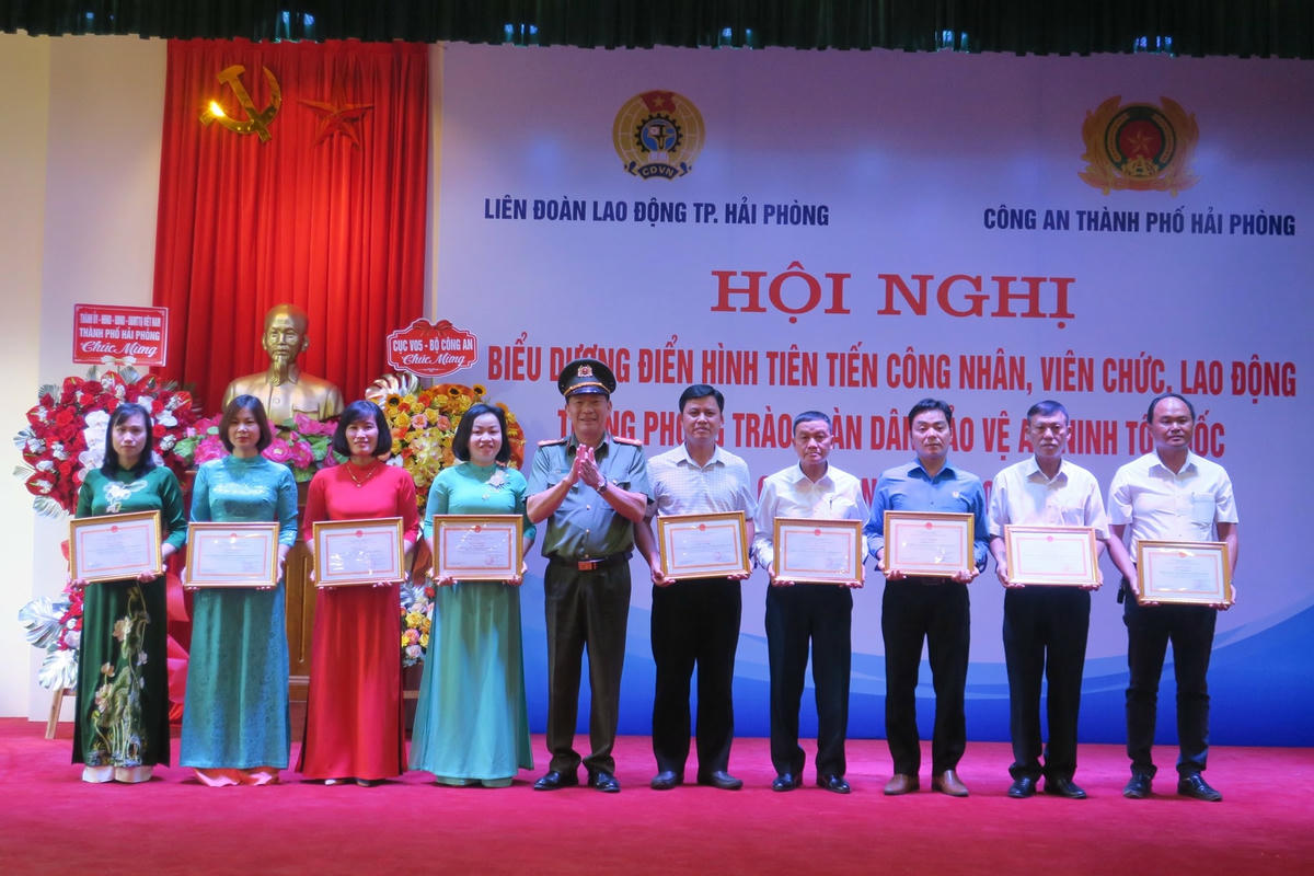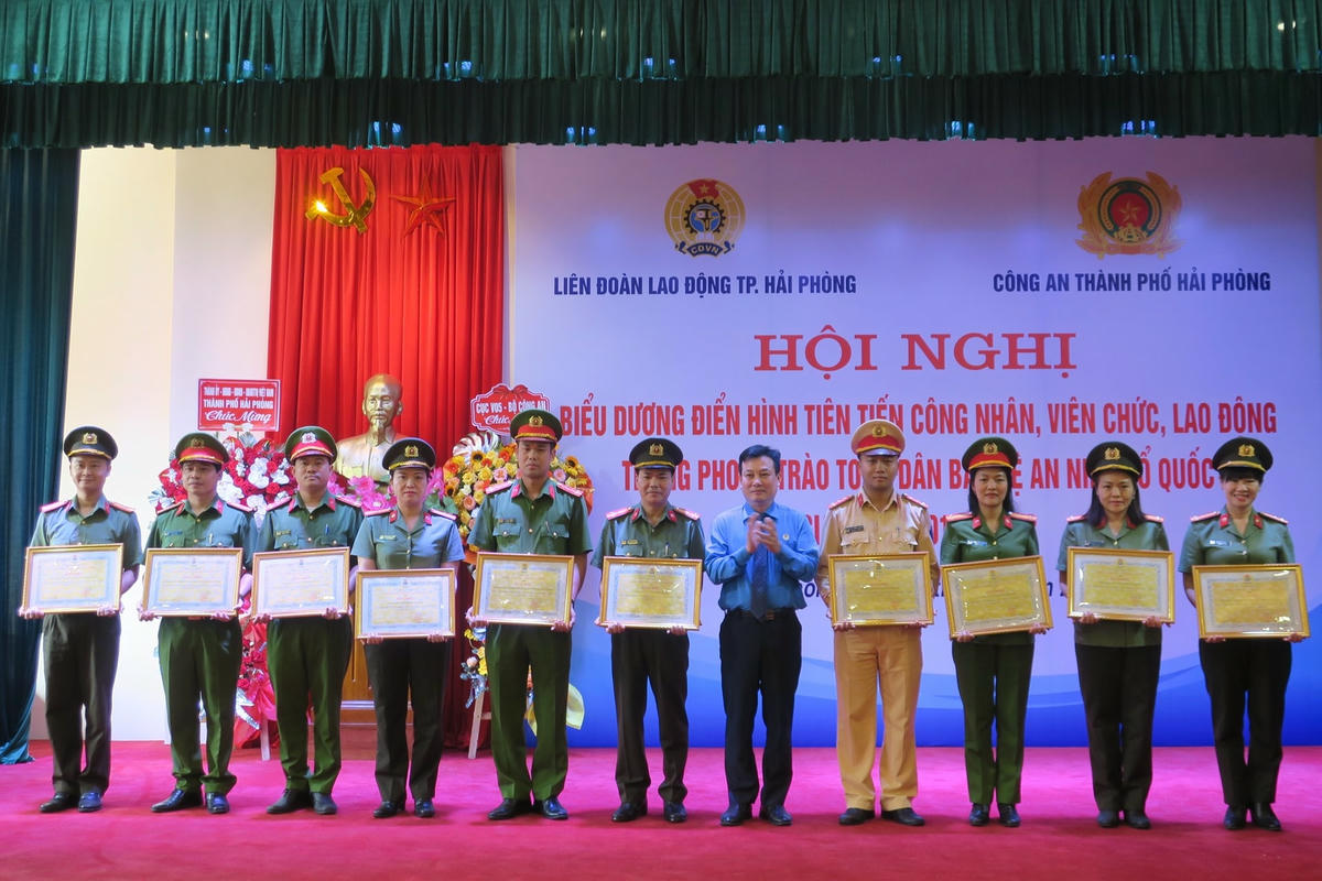 Nhân dịp này, Liên đoàn Lao động đã tặng Bằng khen cho 10 tập thể và 10 cá nhân; Công an TP Hải Phòng tặng Giấy khen cho 10 tập thể và 10 cá nhân có thành tích xuất sắc trong thực hiện Phong trào Toàn dân bảo vệ ANTQ giai đoạn 2018 – 2023.