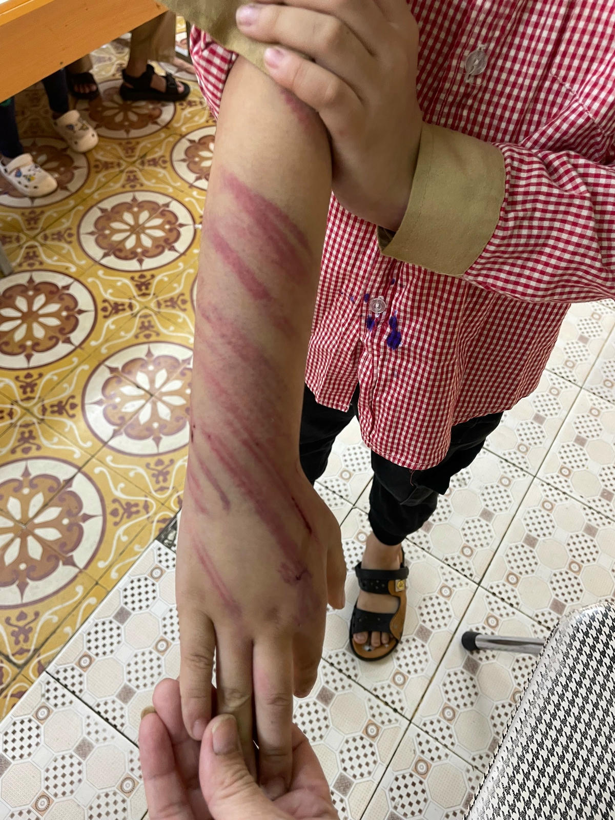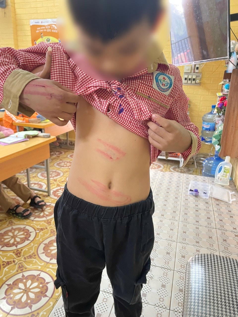 Theo đó, ngày 8/11, giáo viên Trường tiểu học Dư Hàng Kênh (quận Lê Chân) phát hiện học sinh Trương G.B. (8 tuổi), học sinh khối lớp 2 của nhà trường có dấu hiệu bị bạo hành. Toàn thân thể bé trai chằng chịt vết thương bầm tím.