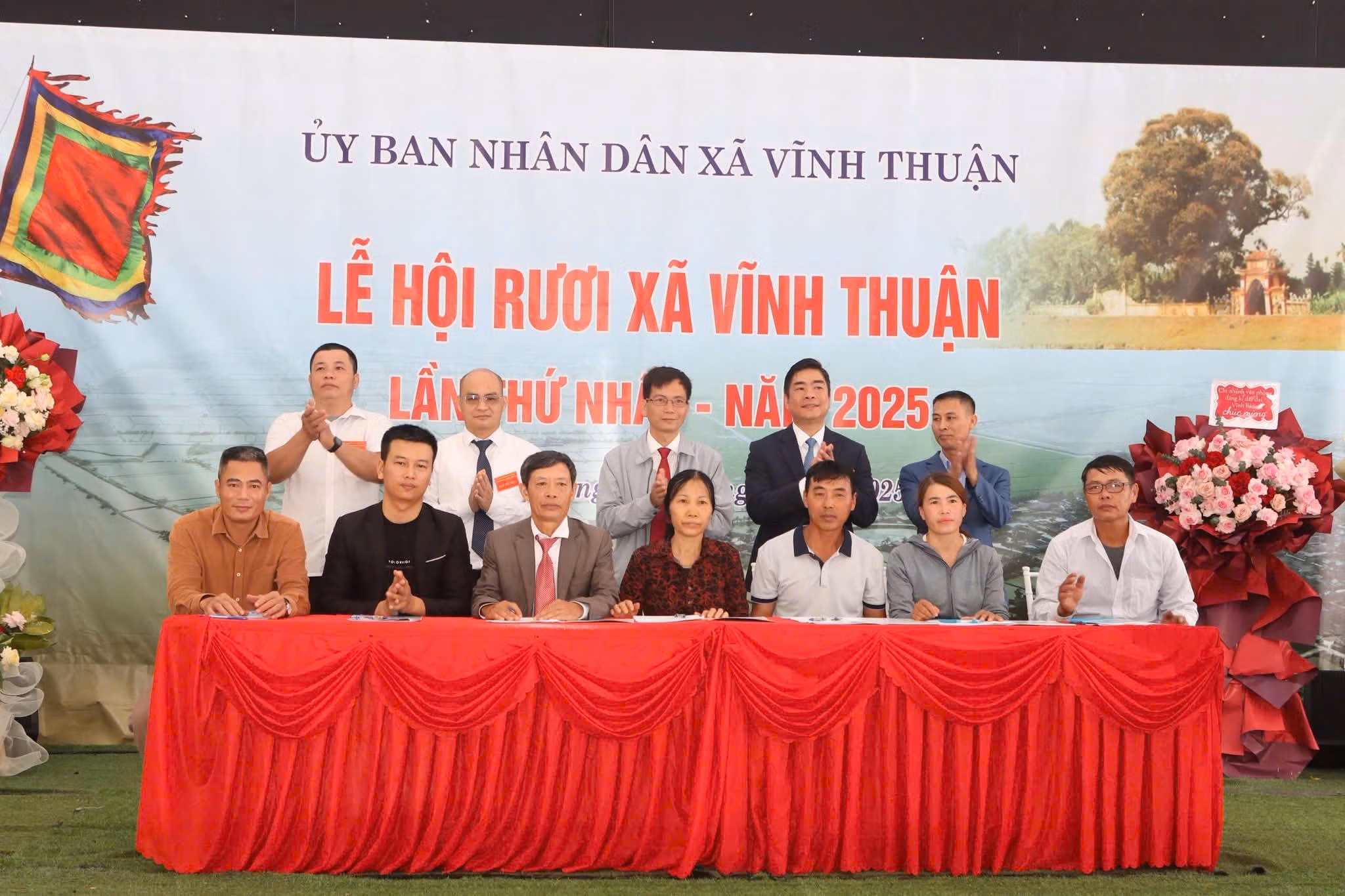 Tại buổi lễ, UBND xã Vĩnh Thuận đã công bố quyết định thành lập Chi hội nghề rươi Vĩnh Thuận, ký kết hợp đồng bao tiêu sản phẩm giữa các hộ nông dân và doanh nghiệp chế biến. Đây là bước khởi đầu quan trọng để nghề rươi phát triển theo hướng tổ chức, chuyên nghiệp và bền vững.