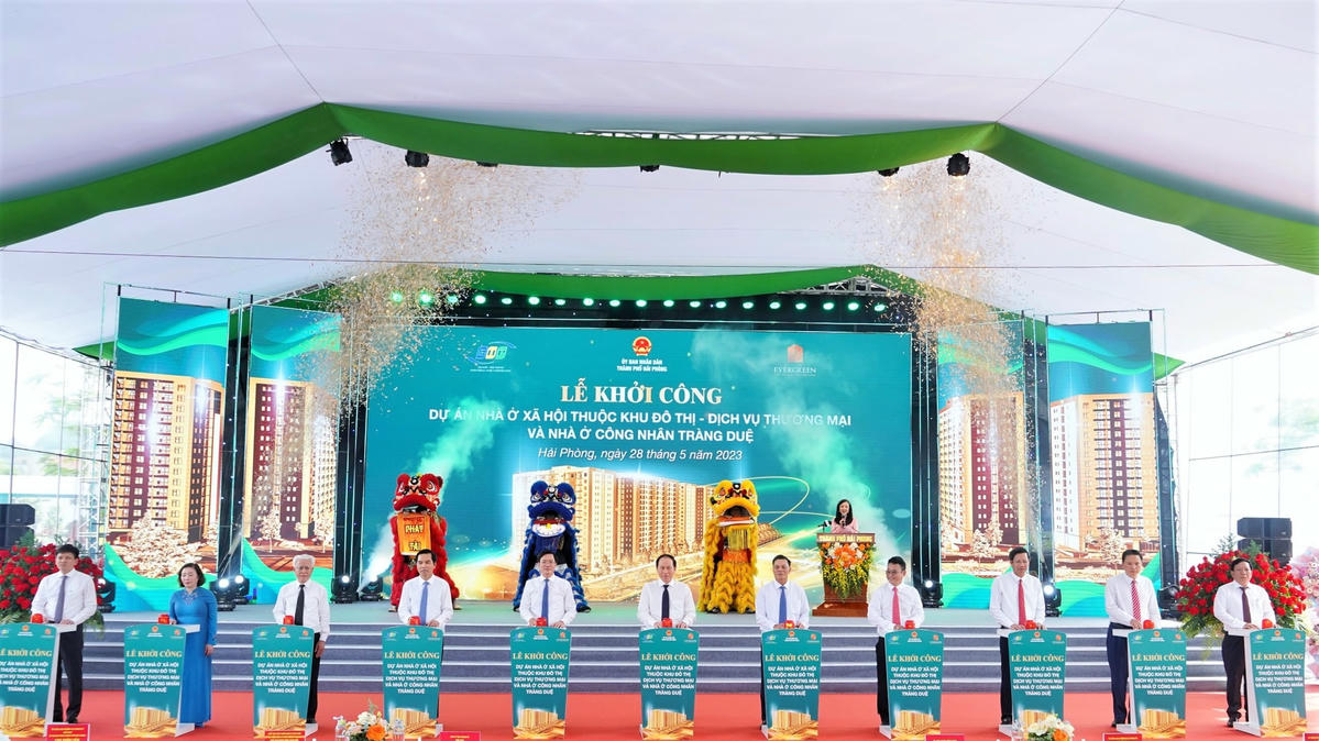 Chiều 28/5, Công ty CP Khu công nghiệp Sài Gòn - Hải Phòng khởi công xây dựng khu nhà ở xã hội tại Khu đô thị - Dịch vụ thương mại và nhà ở công nhân Tràng Duệ (huyện An Dương, Hải Phòng).