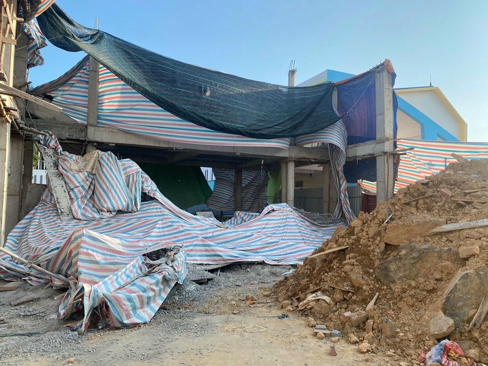 Hải Phòng: Mái bê tông sân khấu trường mầm non đang thi công bị đổ sập