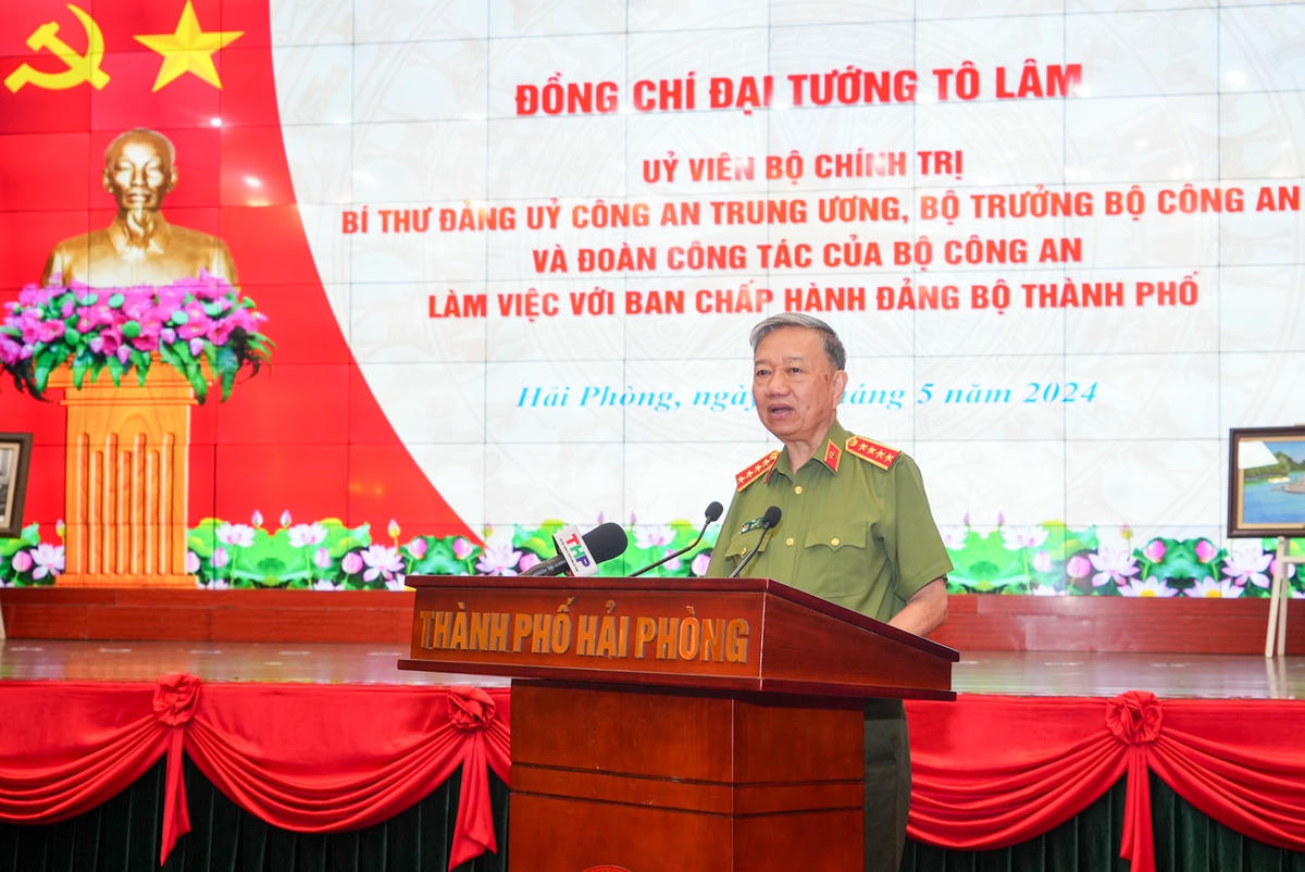 Ngày 9/5, Đại tướng Tô Lâm, Bộ trưởng Bộ Công an đã làm việc với Ban Chấp hành Đảng bộ TP Hải Phòng về kết quả công tác xây dựng Đảng, hệ thống chính trị, phát triển kinh tế - xã hội, bảo đảm quốc phòng – an ninh từ đầu nhiệm kỳ đến nay.