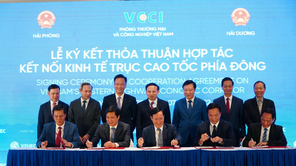 Ngày 28/7, Chủ tịch UBND TP Hải Phòng Nguyễn Văn Tùng; Chủ tịch UBND tỉnh Quảng Ninh Nguyễn Tường Văn; Chủ tịch UBND tỉnh Hải Dương Triệu Thế Hùng; Chủ tịch UBND tỉnh Hưng Yên Trần Quốc Văn; và Chủ tịch Phòng Thương mại & Công nghiệp Việt Nam (VCCI) Phạm Tấn Công đã chính thức ký kết Thoả thuận kết nối kinh tế trục cao tốc phía Đông.