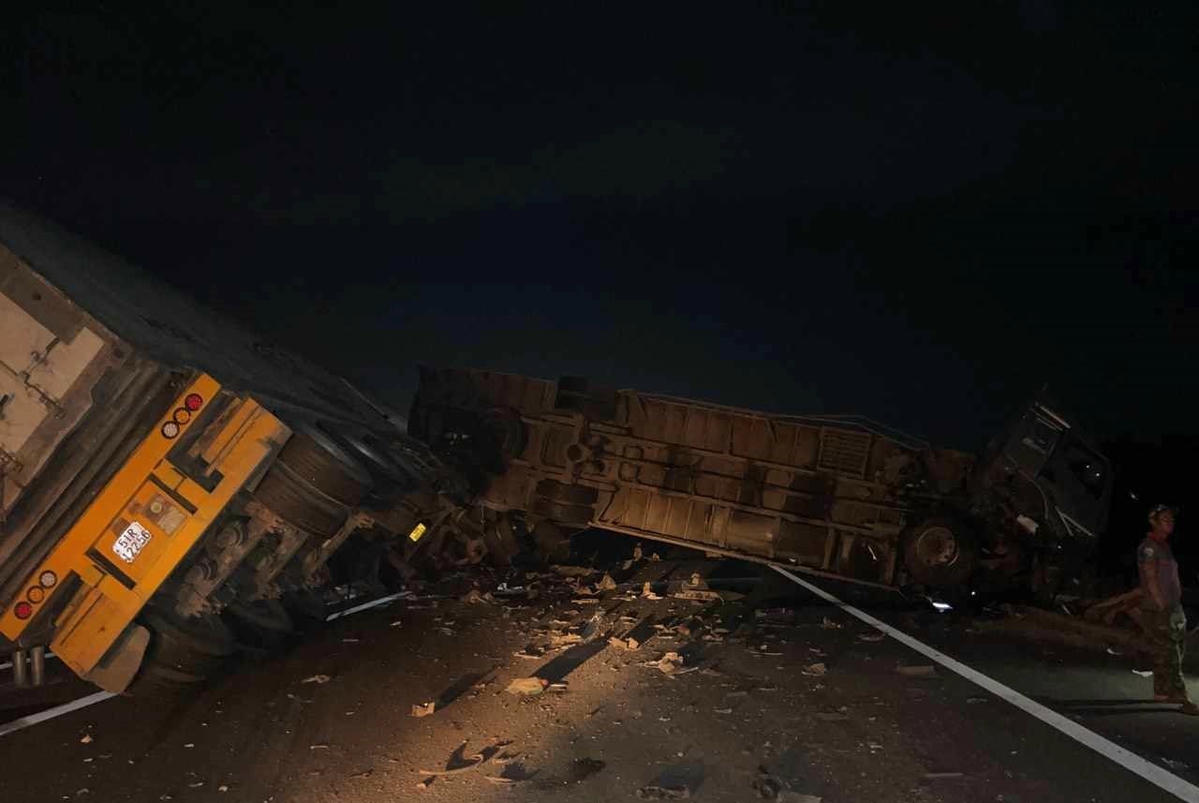 Vụ tai nạn khiến cả 2 xe hư hỏng bị lật nằm chắn ngang toàn bộ mặt đường luồng bên phải tuyến. Có 2 người bị thương nhẹ trong vụ tai nạn, được đưa đi cấp cứu. Giao thông qua vị trí tai nạn bị ách tắc hoàn toàn.