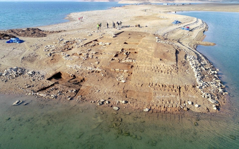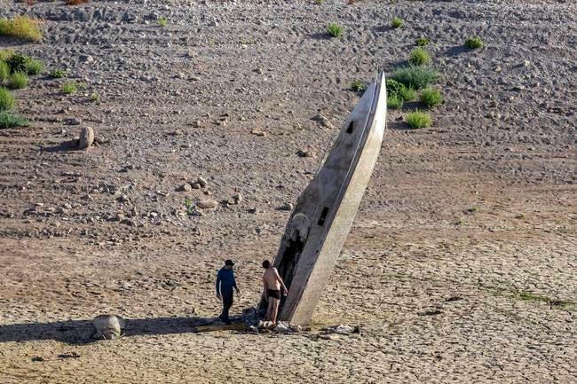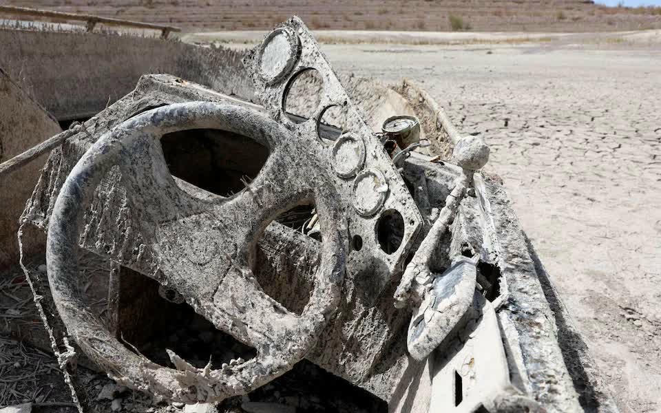 Mọi người đi bộ xung quanh tàn tích của nhà thờ Sant Roma de sau khi nổi lên từ vùng nước thấp của hồ chứa SAU, phía bắc Barcelona, Tây Ban Nha. Đợt nắng nóng và khô hạn kéo dài đã khiến 7 tháng qua trở thành khoảng thời gian nóng nhất ở Tây Ban Nha kể từ năm 1961, khiến các hồ chứa ở nước này duy trì mức trung bình 40% dung tích vào đầu tháng 8, thấp hơn nhiều so với mức trung bình 10 năm trước - khoảng 60%.Nhà tắm Hoàng gia La Isabela nổi lên từ vùng nước thấp của hồ chứa Buendia, ở Sacedon, Tây Ban Nha, ngày 7/8.Ngay cả thành phố cổ cũng được phơi bày nhờ hạn hán. Thành cổ Zakhiku tọa lạc ở Iraq. Theo các chuyên gia, nơi đây từng thuộc về Đế chế Mitanni, quốc gia cổ đại của người Hurrians và tồn tại từ năm 1550 - 1250 trước Công nguyên ở phía bắc Mesopotamia.Hồ Vyrnwy - một hồ chứa ở Powys, Wales - đã bốc hơi đến mức lộ phần tàn tích còn sót lại của làng Llanwddyn. Tàn dư của ngôi làng thế kỷ 19 này được nhìn thấy lần cuối trong một đợt hạn hán vào năm 1976. Sau nhiều tuần thiêu đốt liên tục với mức nhiệt cao kỷ lục trên khắp Vương quốc Anh, Hồ Vyrnwy là một trong nhiều dòng hồ đã bị thu hẹp mạnh.Hạn hán đã để lộ ra những tảng đá "đói" có niên đại từ năm 1616 dưới lòng sông Elbe ở Cộng hòa Séc, với thông điệp đáng sợ gửi tương lai. Những dòng chữ cổ đại trên cảnh báo về những cơn đói có quy mô lớn đáng sợ do hạn hán.Dấu tích của một doanh trại La Mã cổ đại - Aquis Querquennis - ở Tây Ban Nha từng bị nhấn chìm dưới dòng sông Limia đã phải nổi lên do hạn hán. Giờ đây, du khách có thể đi bộ qua những tàn tích của những tháp canh, kho thóc và doanh trại.Tại Lake Mead, những vật dụng còn sót lại như mặt nạ thợ lặn, những thuyền bị chìm - và cả hai thi thể - đã được tìm thấy dưới đáy hồ khô cằn.Edersee-Atlantis, ngôi làng Berich bị bỏ hoang gần Waldeck ở Đức, lấy cảm hứng từ thành phố cổ Atlantis. Nhưng có vẻ như biệt danh Atlantis của nó đã không còn phù hợp khi mọi người bây giờ có thể đi bộ thay vì bơi trên đường phố của nó.Hạn hán làm cho sông Tiber ở thủ đô Rome của Italy trở nên khô cạn. Lòng hồ "trần trụi", để lộ ra một cây cầu từ thời La Mã. Cây cầu được cho là đã được xây dựng dưới triều đại của Hoàng đế Nero (54-68 sau Công Nguyên).Tại sông Danube, tàn tích của một tàu chiến Đức từ Thế chiến II trồi lên mặt nước.Hạn hán tồi tệ nhất châu Âu trong nhiều năm đã đẩy sông Danube hùng vỹ vào tình cảnh với mực nước gần như thấp nhất trong gần một thế kỷ, để lộ hàng chục xác tàu chiến Đức chở đầy thuốc nổ bị chìm trong Thế chiến thứ hai gần thị trấn cảng sông Prahovo của Serbia. Sông Po của Itlay cũng để lộ ra tàn tích tương tự - một tàu chiến bị chìm từ Thế chiến thứ hai với một quả bom chưa phát nổ. Sông Po là con đường hàng hải dài nhất ở quốc gia Nam Âu này.