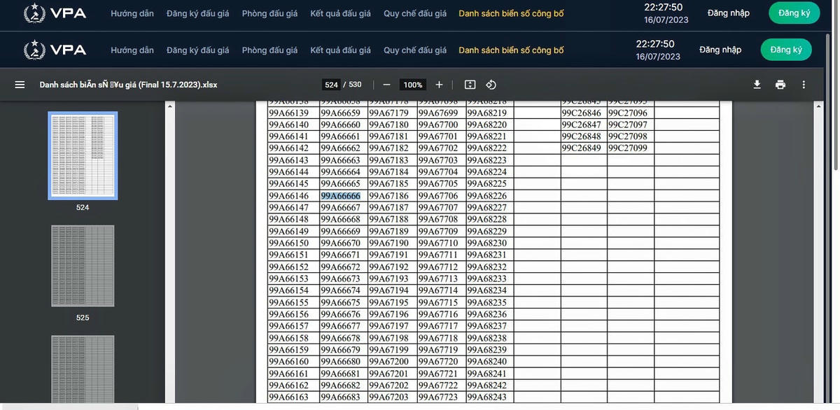 Trong danh sách đưa ra đấu giá lần này, có một số biển kiểm soát nổi bật, nhiều người săn tìm như: 30K-599.99, 99A-67899, 99A-679.79 hay 99A-666.99.