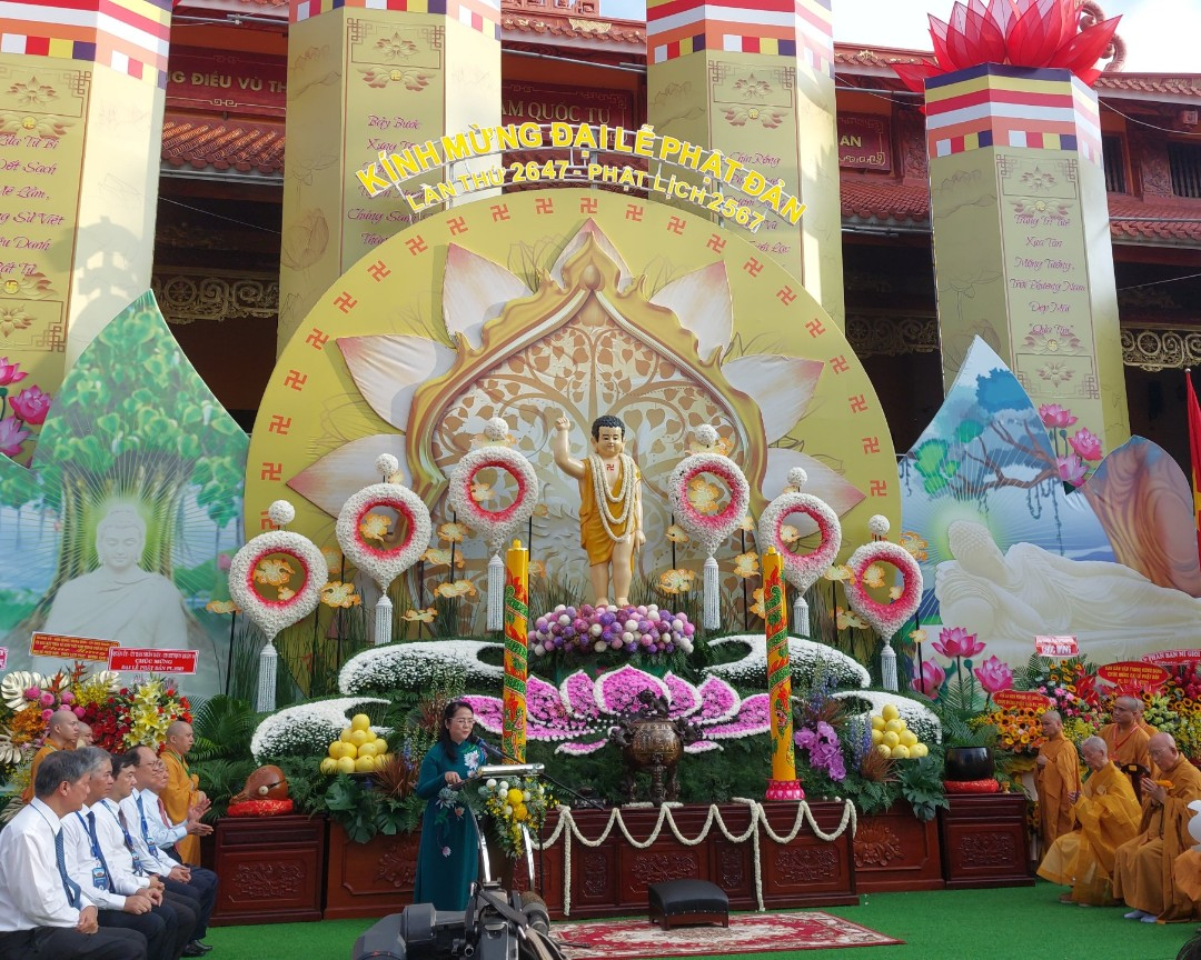 Thay mặt lãnh đạo Thành ủy, HĐND, UBND, UBMTTQVN TP HCM, bà Trần Kim Yến đã gửi lời chúc mừng Đại lễ Phật đản Phật lịch 2567 thành công viên mãn, đồng thời gửi đến chư tôn đức giáo phẩm GHPGVN và GHPGVN TP HCM, Tăng Ni, Phật tử, tín đồ cả nước lời chúc tốt đẹp nhất, một mùa Phật đản an lành, thắm tình đoàn kết dân tộc trong không khí hân hoan kính mừng Đức Phật đản sinh của người con Phật.