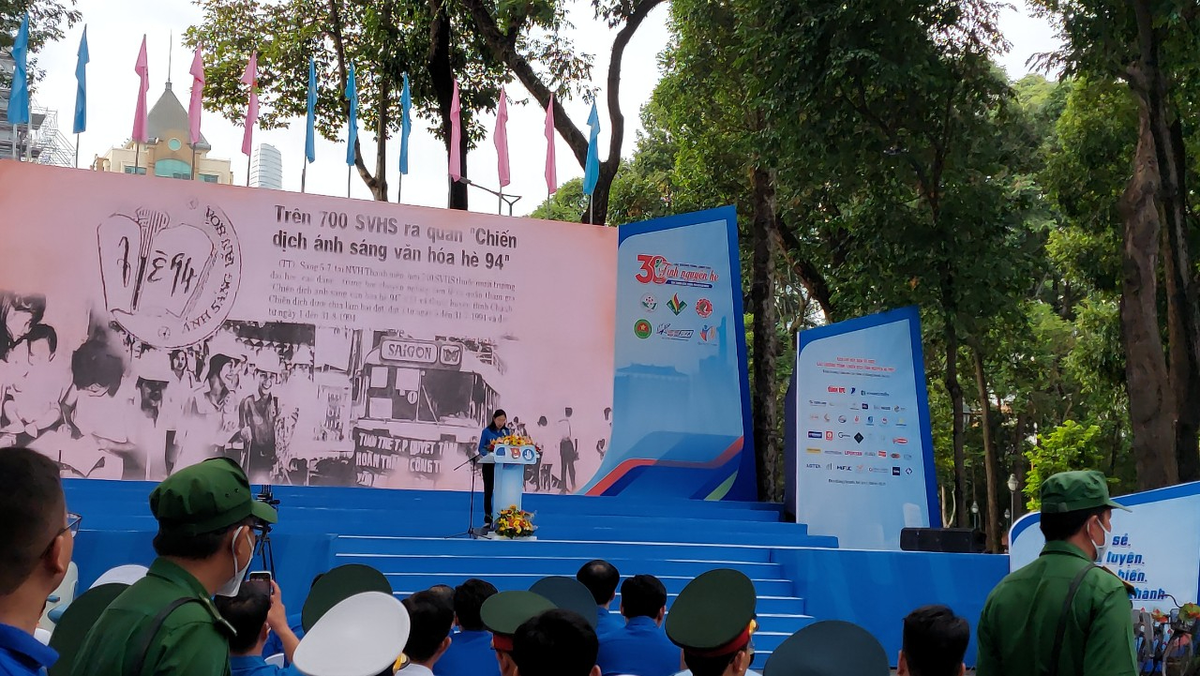 Tại buổi lễ, bà Phan Thị Thanh Phương, Bí thư Thành Đoàn TP HCM cho biết, cách đây 30 năm Lễ ra quân đầu tiên của chiến dịch tình nguyện “Ánh sáng văn hóa hè” đã được tổ chức. Huyện Bình Chánh là địa bàn đầu tiên tổ chức lớp học xóa mù chữ cho chiến tranh 87 người.