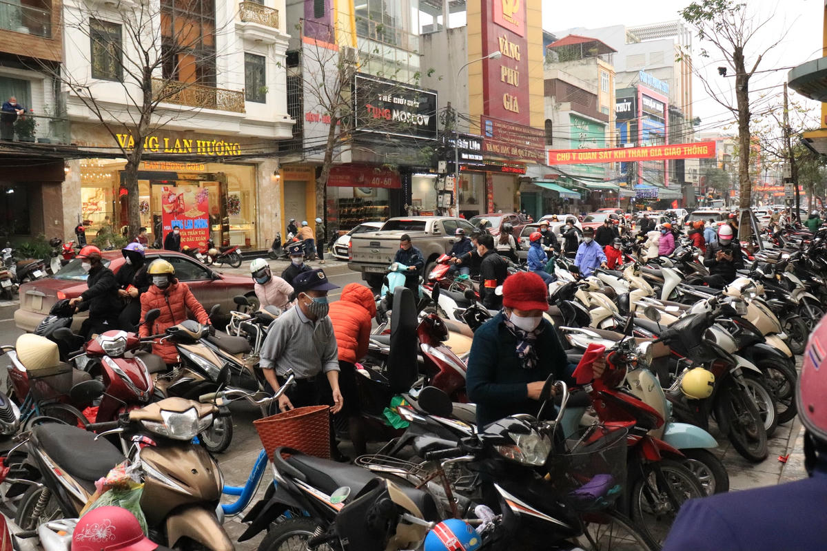 Trong ngày vía Thần Tài, hàng nghìn người dân đã tập trung về tuyến phố Lê Hoàn (phường Lam Sơn, TP Thanh Hóa) để mua vàng, gây nên ùn tắc giao thông cục bộ.