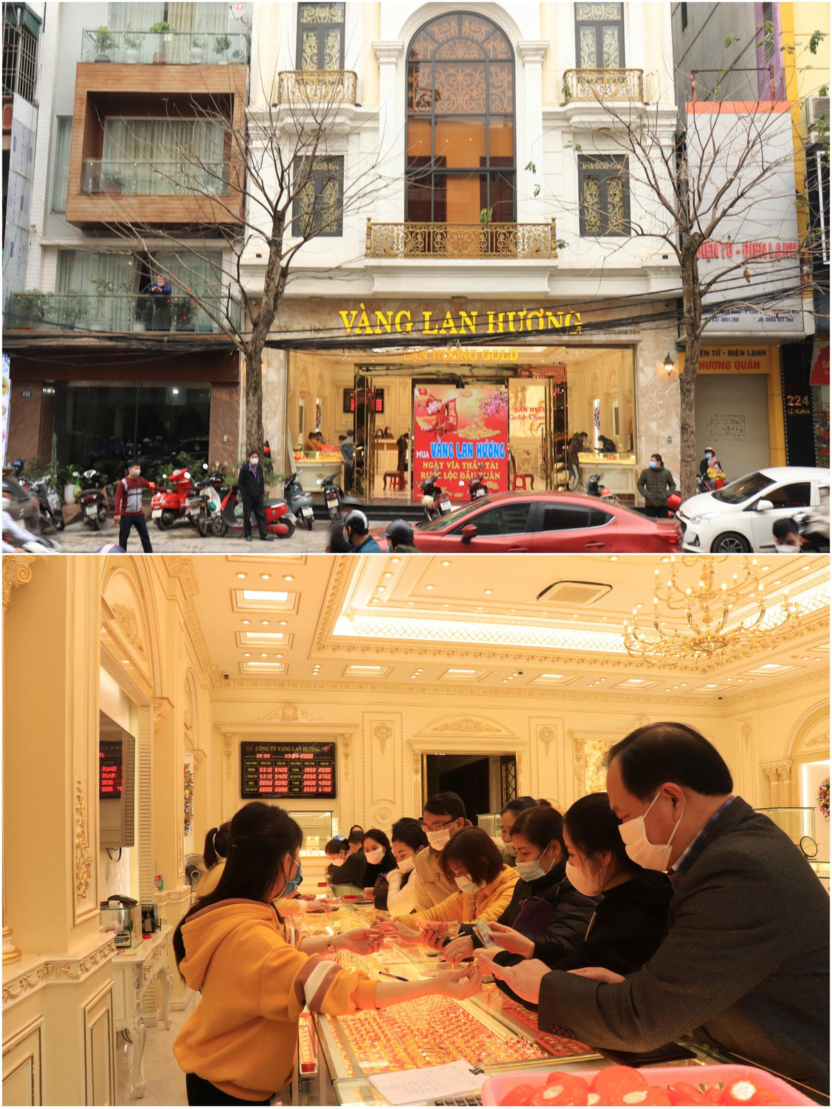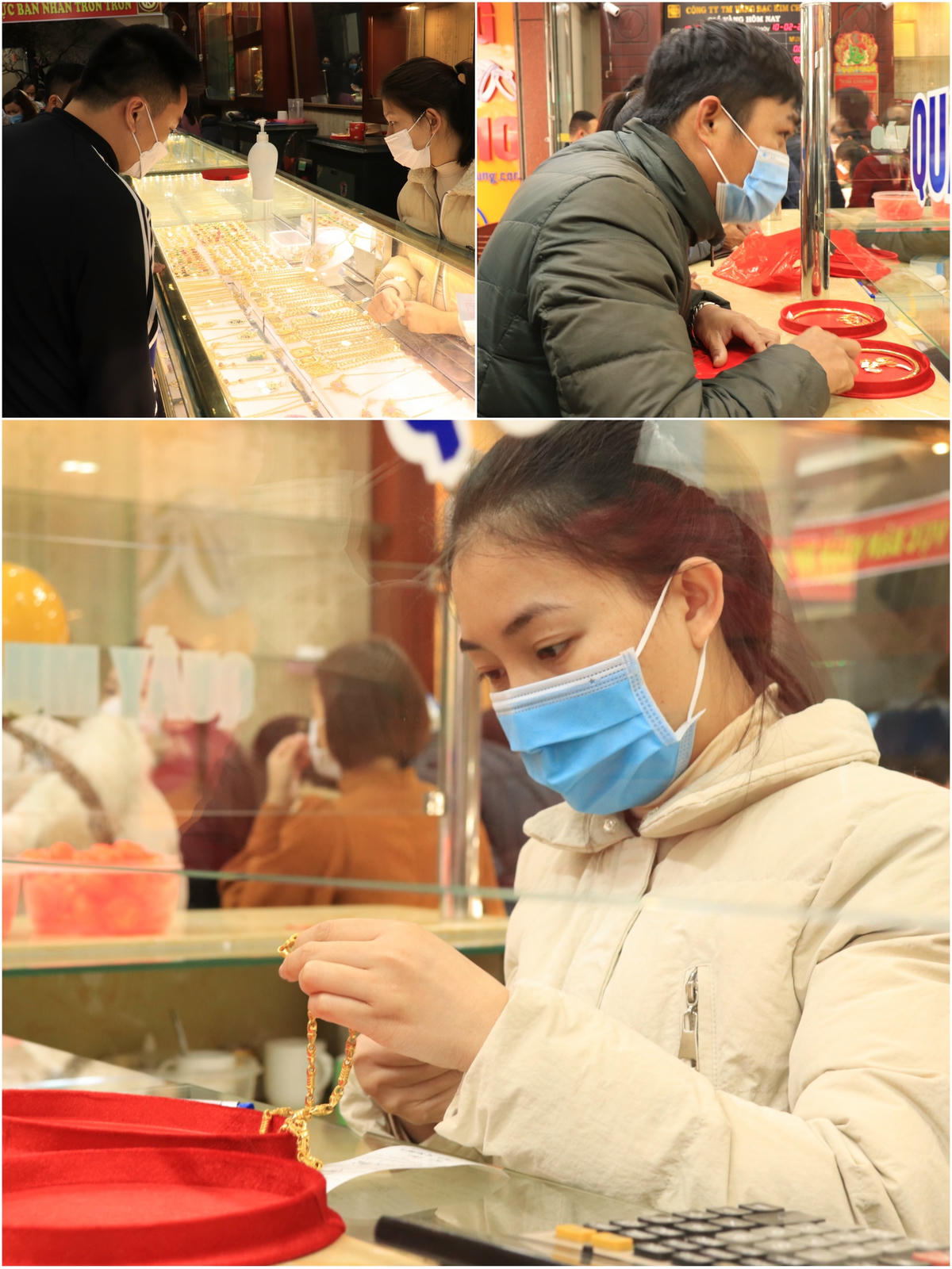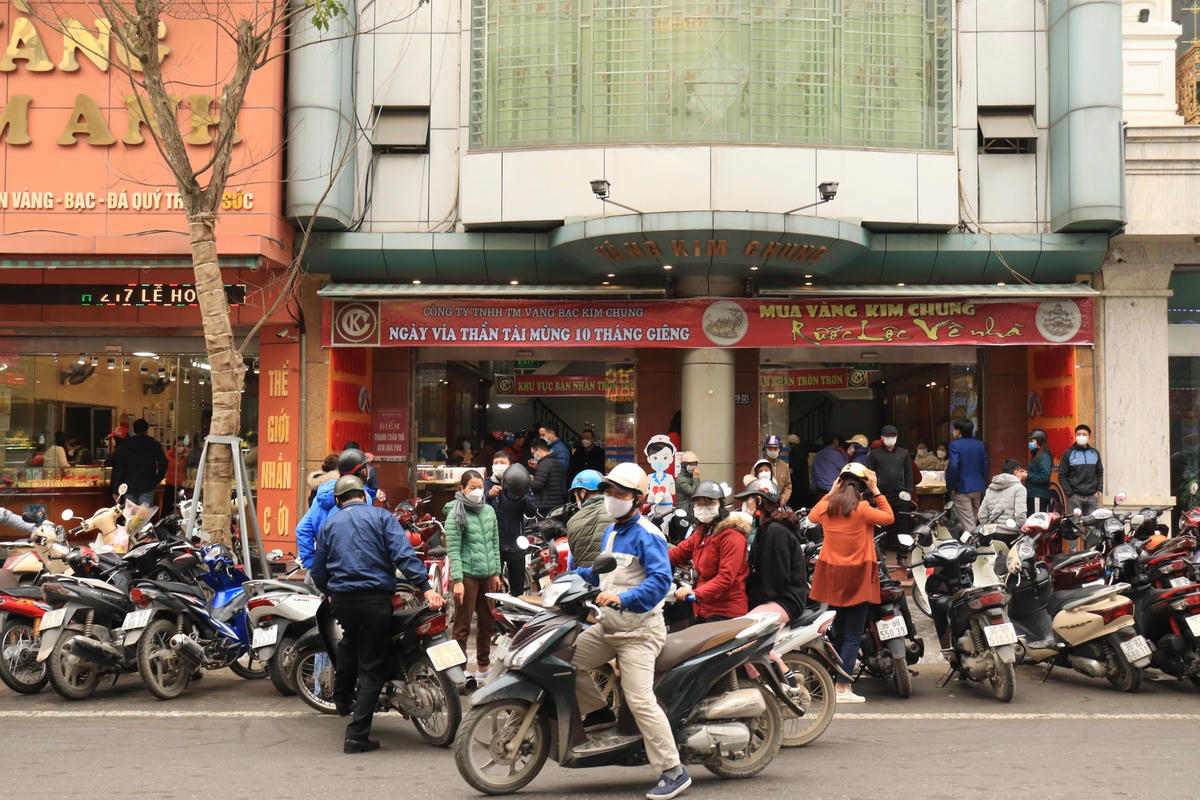 Ngay từ sáng sớm mùng 10 tháng Giêng (tức ngày 10/2), hàng nghìn người dân đã đổ về các tiệm vàng trên đường Lê Hoàn, TP Thanh Hoá để mua vàng.Theo quan niệm, ngày 10 tháng Giêng Âm lịch là ngày vía Thần Tài, người mua vàng sẽ gặp nhiều may mắn, làm ăn phát đạt, công việc hanh thông… Tại cửa hàng vàng bạc Kim Chung, ngay từ sáng sớm, người dân đã đổ xô về đây để mua hàng. Vẫn như mọi năm, năm nay, Kim Chung vẫn là cửa hàng bán ra nhiều vàng nhất trong sáng ngày vía Thần Tài.Giá vàng mua vào, bán ra tại các công ty vàng bạc trên đường Lê Hoàn có sự khác biệt rõ rệt.Trong ngày vía Thần Tài, cũng có rất đông người dân mang kiềng vàng, nhẫn vàng, dây chuyền vàng... đến các cửa tiệm để bán.So với tiệm vàng Kim Chung, các cửa hàng vàng bạc đá quý trên đường Lê Hoàn có phần vắng khách hơn. Ông Võ Đình Ngọc (68 tuổi, trú phường Quảng Thịnh, TP Thanh Hoá) cho biết, ông đến mua vàng từ sáng sớm, nhưng phải đến gần 8h mới mua được 1 chỉ vàng ưng ý cho bản thân. "Ngày vía Thần Tài, tôi mua 1 chỉ vàng với mong muốn gia đình có một năm phát tài, mọi việc hanh thông".Trước sự đổ bộ của hàng trăm người dân, các công ty đã huy động lượng lớn nhân sự để phục vụ.Lực lượng Cảnh sát trật tự TP Thanh Hoá được điều động để phân làn, đảm bảo việc lưu thông trên tuyến phố Lê Hoàn.