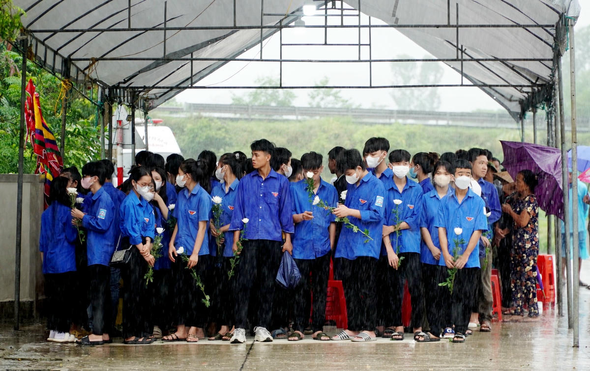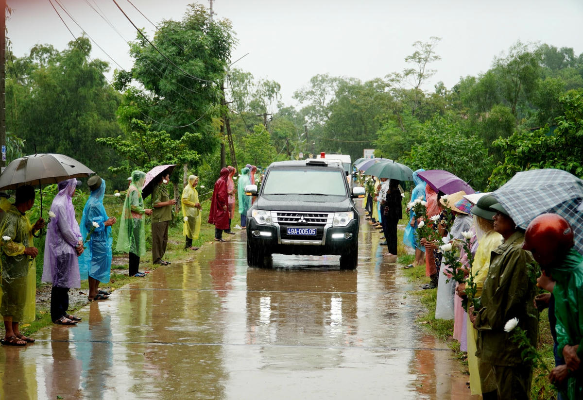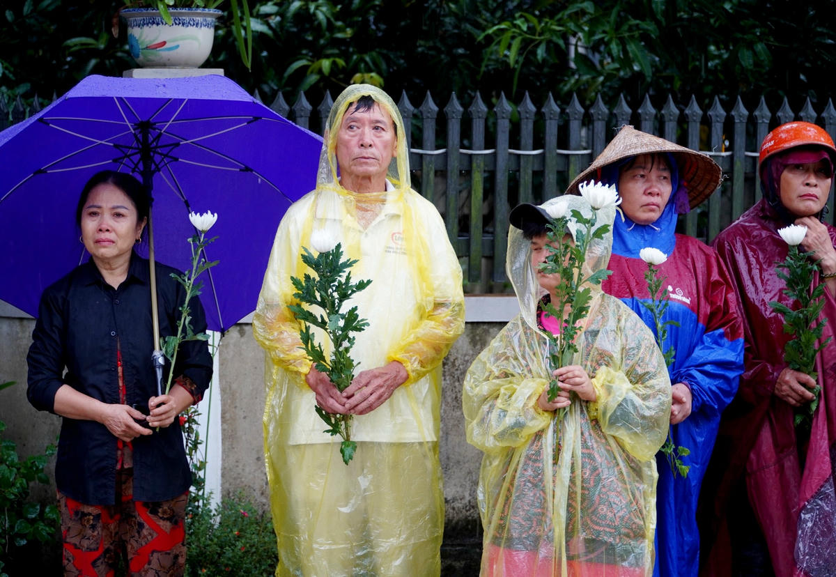 Hàng trăm người dân đội mưa cầm hoa cúc trắng đón liệt sĩ Lê Ánh Sáng