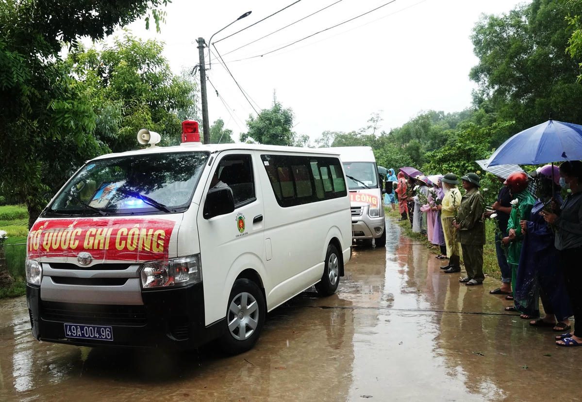Trong cơn mưa, chính quyền địa phương, cơ quan chức năng, đồng chí, đồng đội, bạn bè, gia đình và hàng trăm bà con nhân dân thôn Phái Nam đã xếp làm 2 hàng, lặng lẽ trên tay những nhành hoa cúc trắng đón linh cữu liệt sĩ Sáng về với đất mẹ.