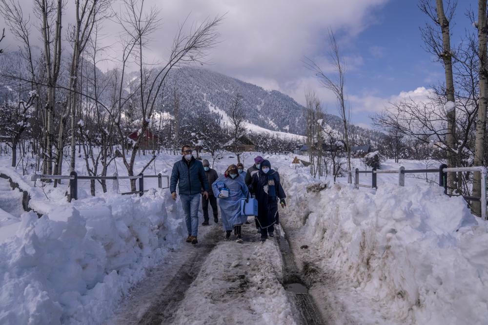 Các quan chức y tế gần đây đã đi bộ một chặng đường dài để đến một số ngôi làng bị chia cắt khỏi các thị trấn gần nhất do tuyết rơi dày. Người dân tại những ngôi làng này hầu hết đã được tiêm chủng – bao gồm cả Khag, một ngôi làng phía sâu trong rừng nơi cư dân chủ yếu là bộ tộc và sống trong những ngôi nhà làm từ bùn, đá hoặc gỗ.