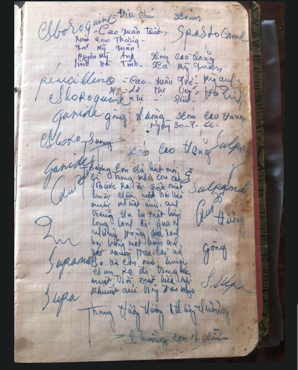 Cuốn sổ không chỉ có nét chữ, chữ ký của người lính có tên Cao Xuân Tuất mà còn có bút tích của một số người khác với các địa điểm khác nhau.