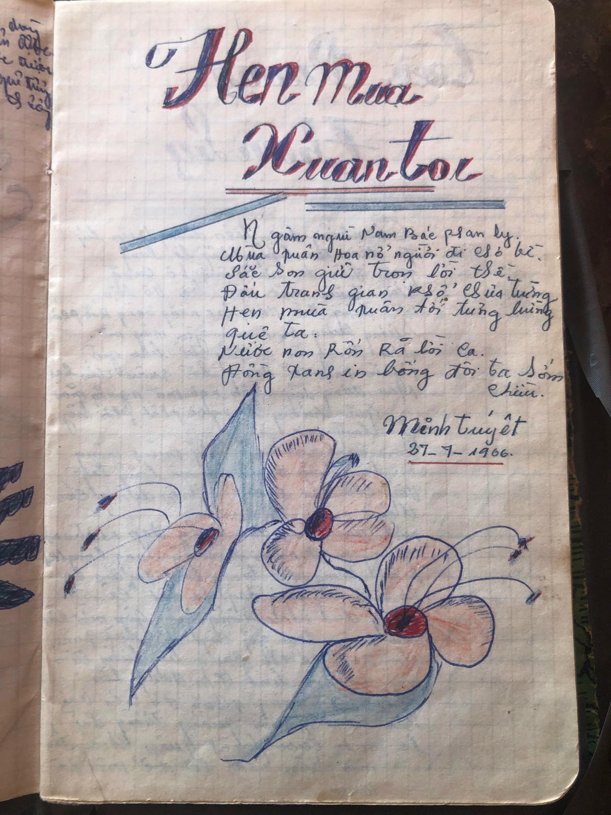 Theo bài báo, Peter Mathews tìm thấy cuốn sổ trong một chiếc ba lô của bộ đội Việt Nam tại trận địa Đăk Tô, Tây Nguyên (huyện Đăk Tô, Kon Tum, Việt Nam) vào tháng 11/1967.