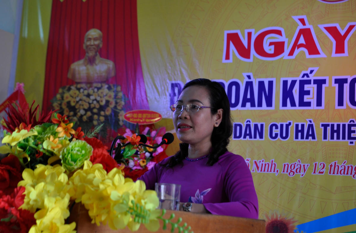 Ngày 12/11, khu dân cư Hà Thiệp, xã Võ Ninh, huyện Quảng Ninh, tỉnh Quảng Bình long trọng tổ chức Ngày hội Đại đoàn kết toàn dân tộc. Bà Phạm Thị Hân, Chủ tịch Ủy ban MTTQ tỉnh Quảng Bình đã đến dự và phát biểu tại ngày hội.