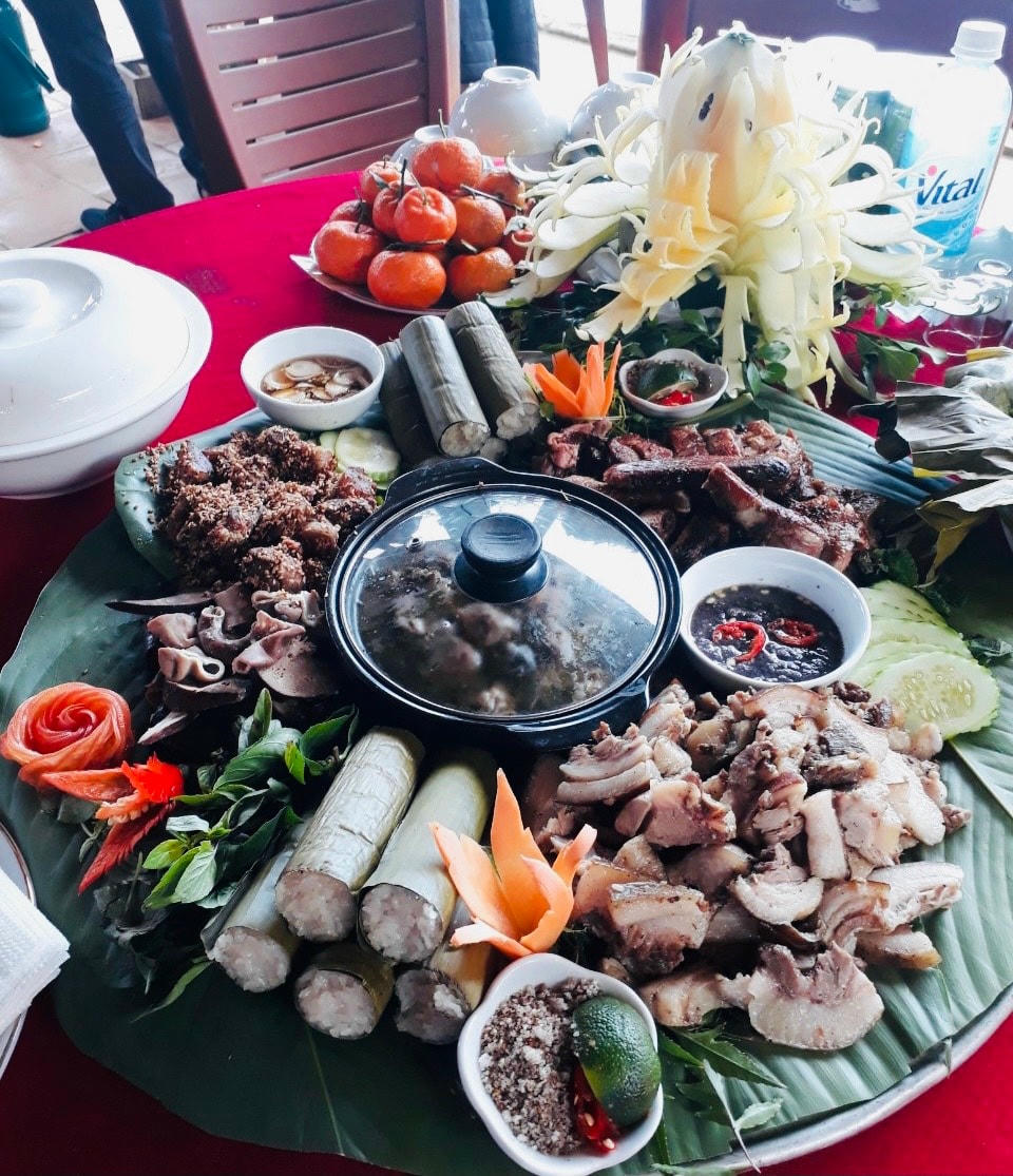 Đội văn nghệ Hoa Núi biểu diễn phục vụ du khách miễn phí tại homestay Trung Nhay, Thôn Báng xã Thành Sơn.