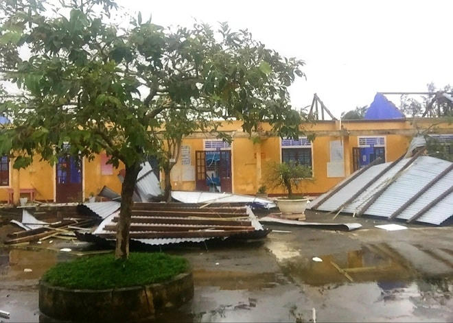 Sáng 15/11, sau ảnh hưởng của cơn bão Vamco bước đầu khiến nhiều địa phương trên địa bàn tỉnh Thừa Thiên - Huế bị thiệt hại nặng.Nhiều cây xanh cổ thụ trên các tuyến đường tại TP Huế bị gió quật ngã, bật gốc.Một cây xanh cổ thụ bị gãy đổ đè lên nhà một người dân.Nhiều biển hiệu bị gió thổi bay ra đường.Bệnh viện Quân y 268, TP Huế bị gió thổi tốc mái.Tại xã Phú Thuận, huyện Phú Vang, cơn bão số 13 đã khiến địa phương này bị thiệt hại nặng.Vào khoảng 3h30 sáng 15/11, một tàu cá TTH 99911TS bị đứt néo khi đang neo đậu ở phá Tam Giang đoạn qua tổ dân phố Hải Tiến, thị trấn Thuận An, huyện Phú Vang.Chiếc tàu sau đó đã đâm vào nhà bà Lê Thị Xuyên ở gần đó khiến căn nhà bị sập đổ hoàn toàn.Ông Đặng Tiến Tùy, Chủ tịch UBND xã Phú Thuận (huyện Phú Vang) cho biết, đây là cơn bão có gió giật mạnh khủng khiếp nhất mà địa phương từng thấy. Bão số 13 đã khiến Trường tiểu học số 1 Phú Thuận (ảnh) bị tốc mái, nhiều ngôi nhà dân bị hư hỏng nặng.