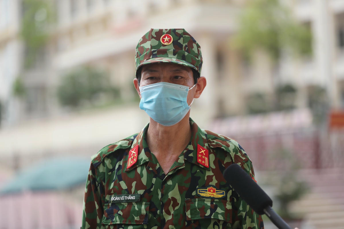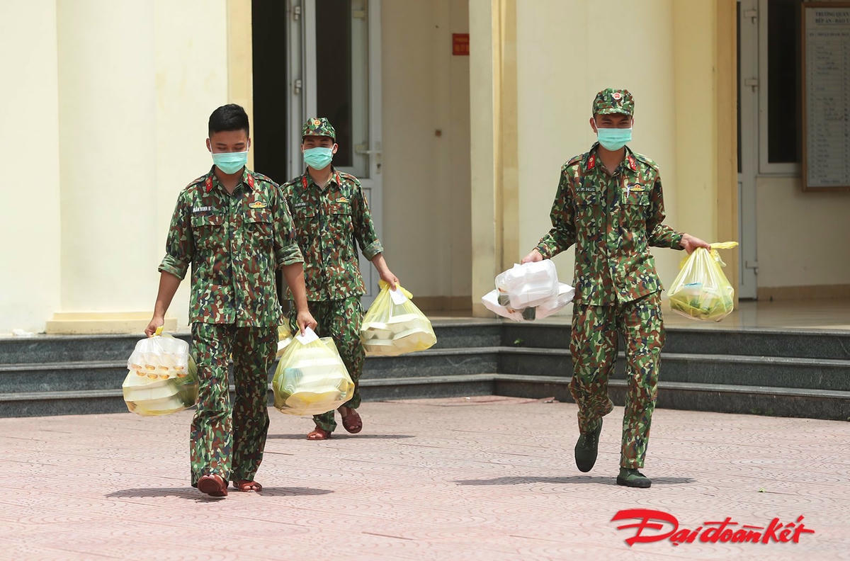 Đại tá Đoàn Vũ Thắng, Khung trưởng Khung quản lý cách ly tại Trường Quân sự Bộ Tư lệnh Thủ đô chia sẻ với phóng viên: “Cán bộ chiến sĩ phục vụ trong bếp ăn cũng như trong khu vực cách ly luôn xác định hoàn thành nhiệm vụ là trên hết. Trưa tháng 5, thực sự khi nhìn cảnh tất cả vì công dân cách ly, các chiến sĩ, nhân viên đẩy từng xe cơm, xách từng túi nước lên khu trung tâm, chúng tôi – những người quản lý cũng rất cảm động. Quần áo toát mồ hôi nhưng với tinh thần trách nhiệm vẫn phải thực hiện tốt nhiệm vụ của mình”.