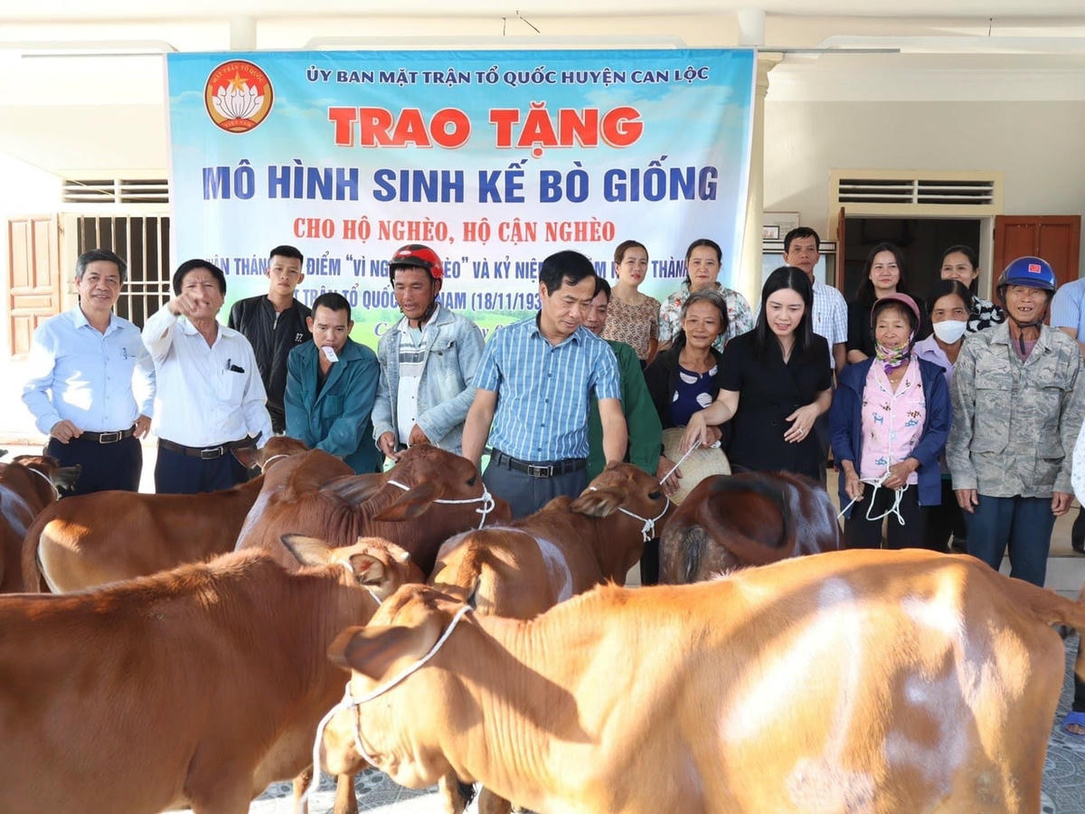 Ủy ban MTTQ huyện Can Lộc (Hà Tĩnh) vừa trích 260 triệu đồng từ Quỹ Vì người nghèo của huyện và nguồn xã hội hóa để làm nhà và trao bò giống cho hộ nghèo, hộ cận nghèo trên địa bàn.