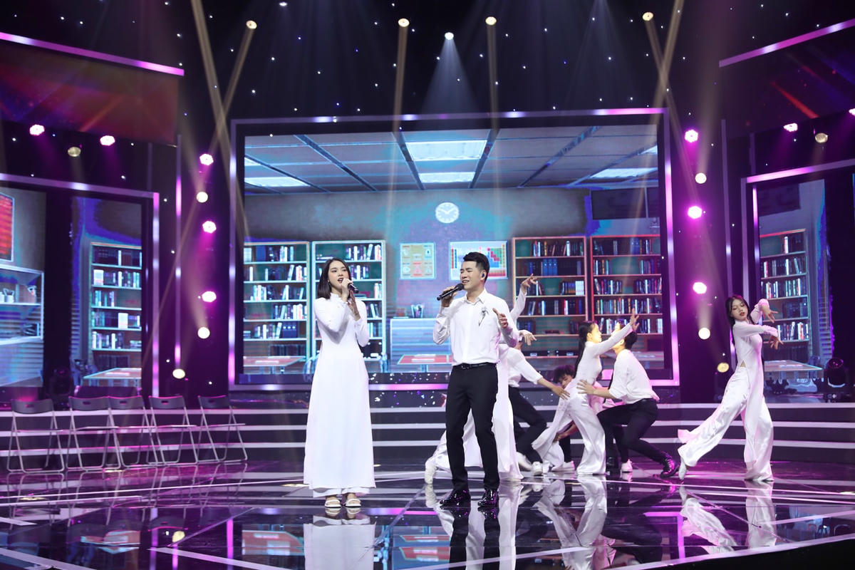 Cả 2 đã đưa khán giả "một vé" trở về tuổi thơ, ở những năm tháng sinh viên còn ngồi trên ghế nhà trường. Nàng diện áo dài thướt tha cùng chàng thư sinh trong chiếc sơ mi trắng dạo quanh sân trường.