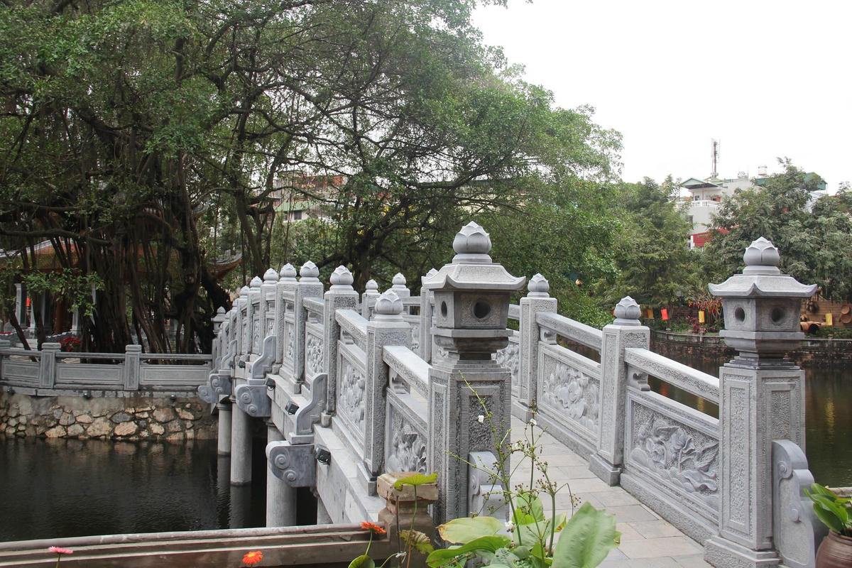 Thay đổi đáng chú ý là sự xuất hiện của chiếc cầu đá dẫn sang gò, tòa Phương đình. Cầu đá là giải pháp tối ưu khi tu bổ hồ Văn, đặt ở phía Tây Bắc hồ. Cầu bằng đá xanh, dài gần 17m, rộng hơn 2m chia làm 5 nhịp lớn, 4 hàng chân cột. Mảng trang trí cầu gắn với truyền thống dân gian, lan can cầu cao 0,95m được bọc toàn bộ đá xanh đục thô.