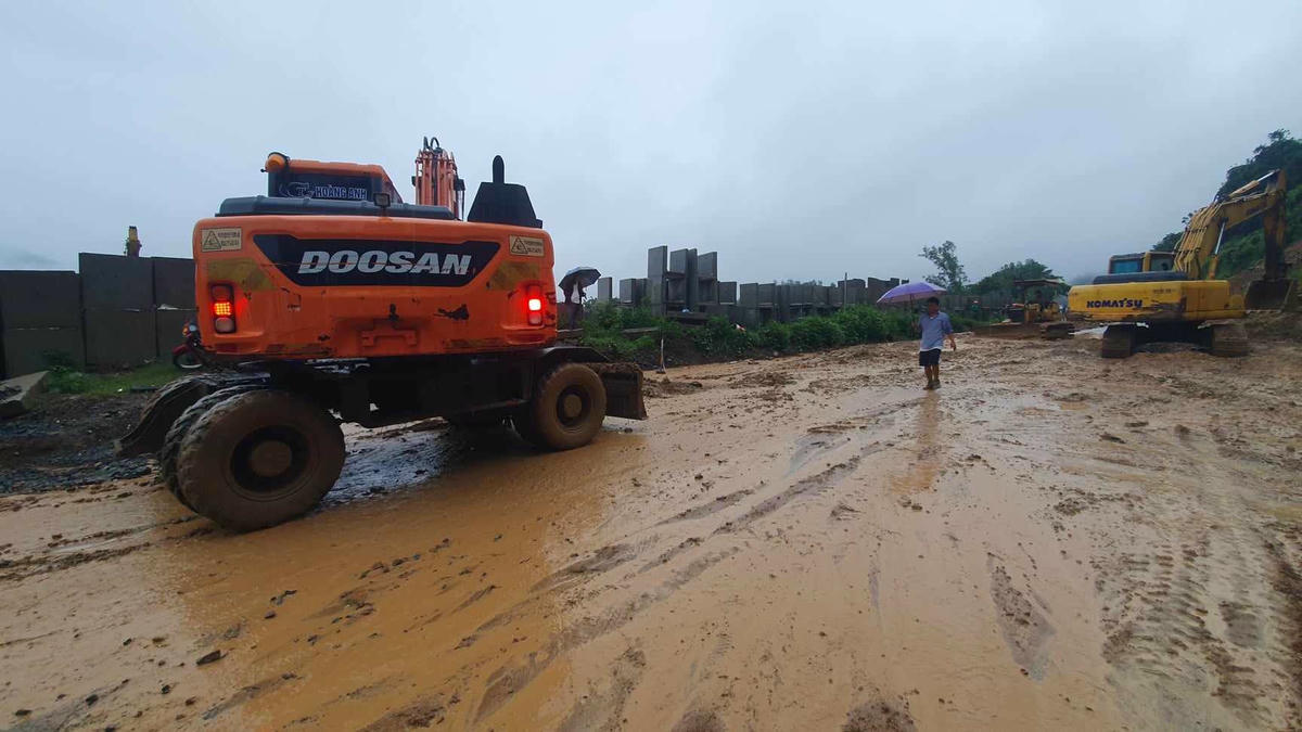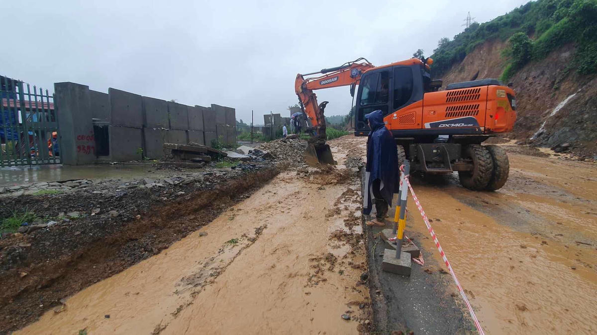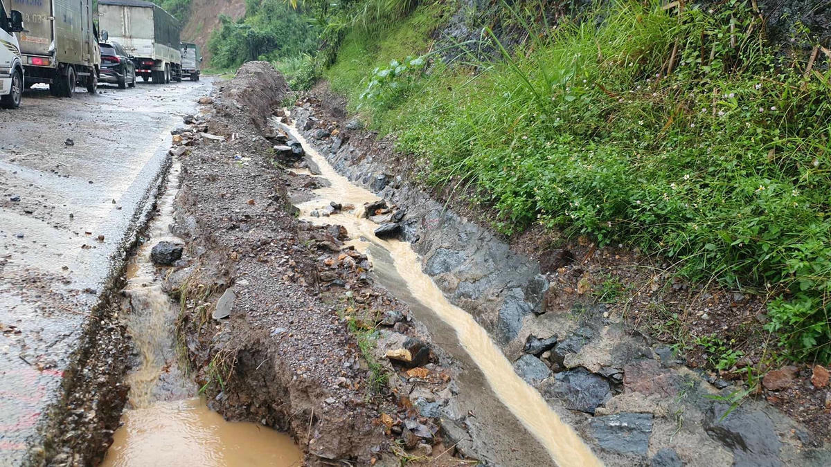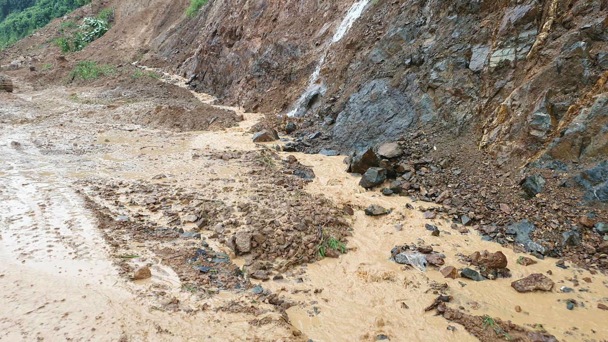 Khẩn trương khắc phục sạt lở tại dốc Cun để đảm bảo giao thông.