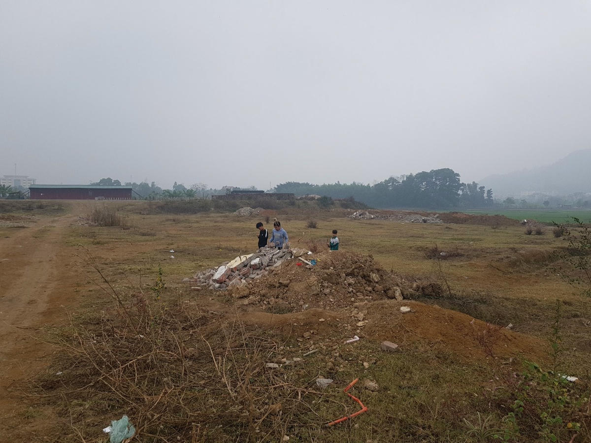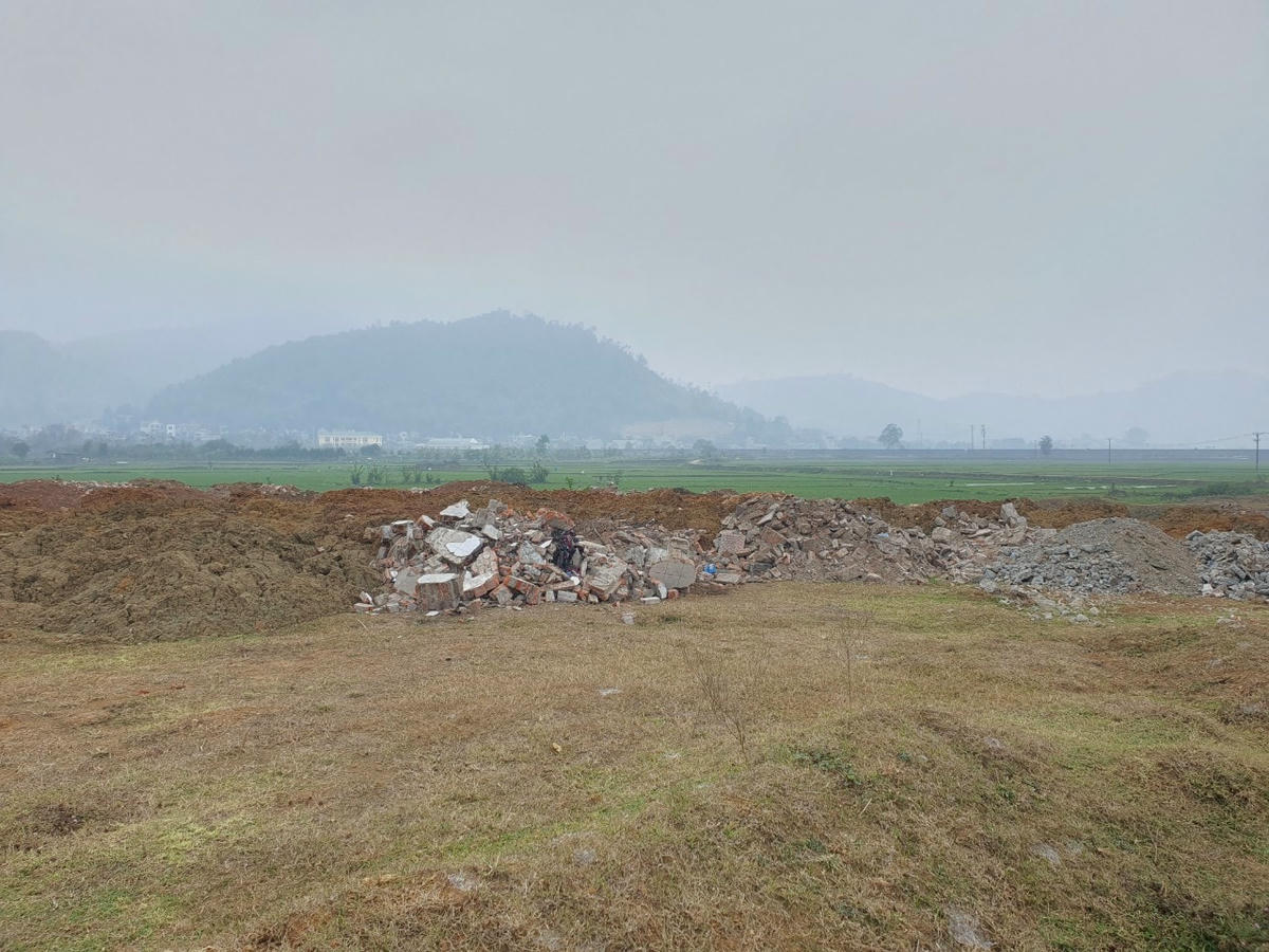 Ghi nhận của PV Báo Đại Đoàn Kết chiều 3/2, dự án mới chỉ san lấp được một phần diện tích, còn lại vẫn là ruộng lúa người dân đang canh tác. Khu đất san lấp dựng một số nhà dựng tạm bằng tôn, lều lán trông hoang tàn. Người dân tận dụng chăn thả gia súc trên khu đất dự án. Đặc biệt, nhiều bãi đất đá, vật liệu thải bị người dân đổ tràn lan trên phần đất được san lấp của dự án.