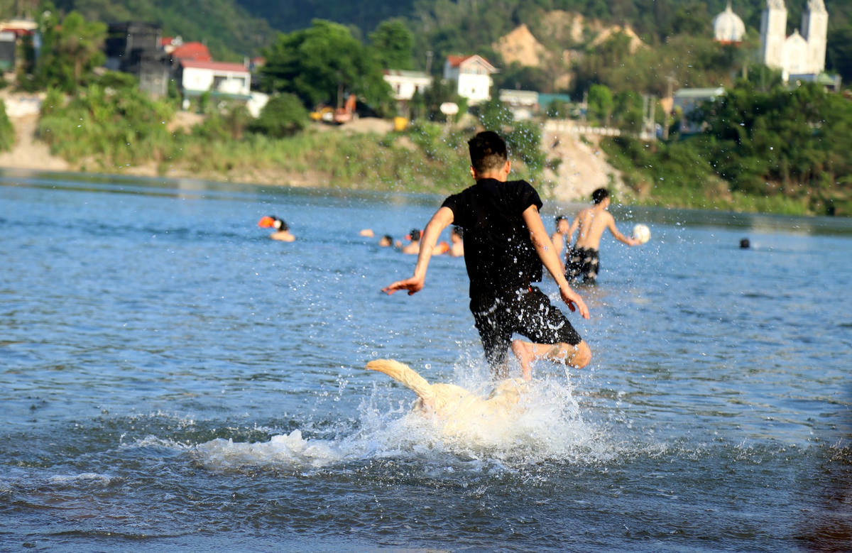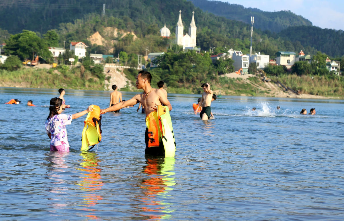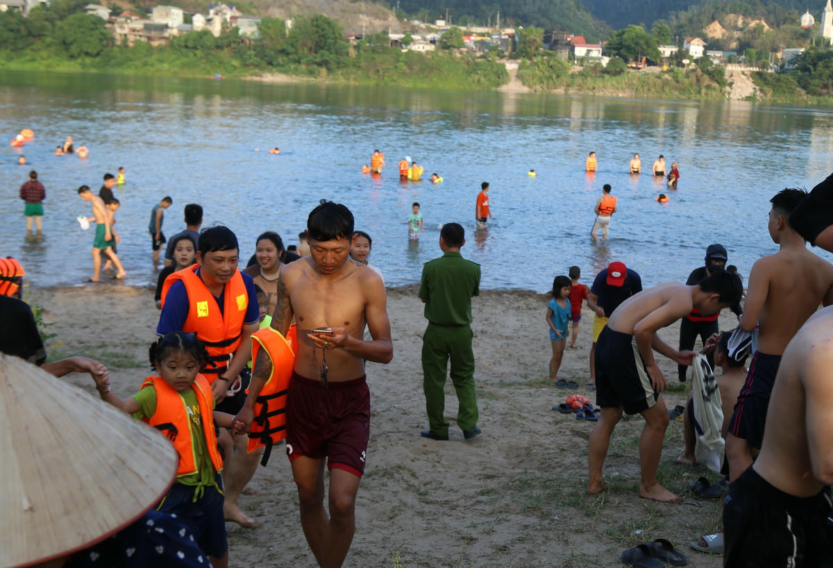 Trong những ngày nắng nóng cao điểm vừa qua, tại nhiều khúc sông vùng hạ lưu Thủy điện Hòa Bình (TP Hòa Bình, tỉnh Hòa Bình), một bộ phận người dân trên địa bàn thành phố Hoà Bình và du khách bất chấp nguy hiểm, chủ quan xuống “tắm sông, giải nhiệt”.