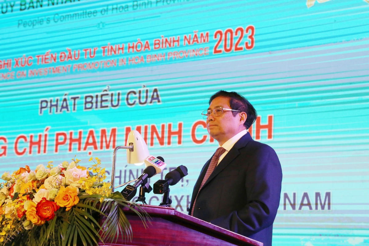 Phát biểu tại hội nghị, Thủ tướng Phạm Minh Chính cho rằng, Hòa Bình là một trong những địa phương được thiên nhiên ưu đãi, với nhiều tiềm năng lợi thế, đặc điểm riêng mà không phải địa phương nào cũng có, với đầy đủ các loại địa hình, các hệ sinh thái của vùng Trung du và miền núi; có nguồn tài nguyên thiên nhiên phong phú, đa dạng; hệ thống giao thông đường bộ, đường thủy thuận tiện kết nối với Vùng Kinh tế trọng điểm Bắc Bộ, nhất là tiếp giáp Thủ đô Hà Nội.