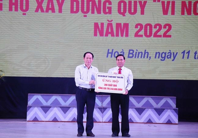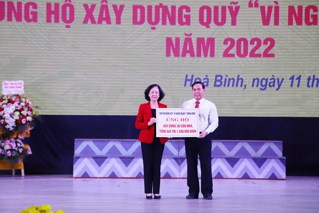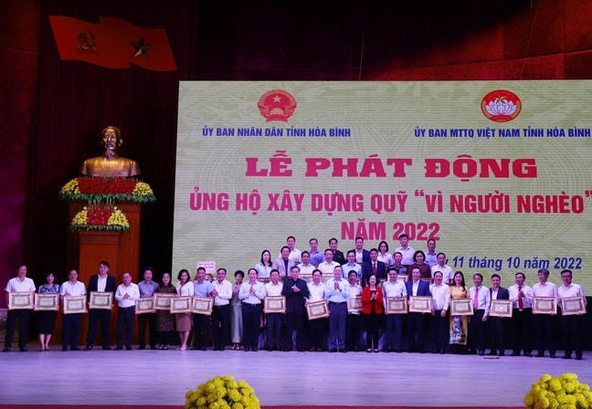 Trưởng Ban Dân vận Tỉnh ủy, Chủ tịch Ủy ban MTTQ Việt Nam tỉnh Hòa Bình Bùi Tiến Lực cho biết, năm 2021, tỉnh không tổ chức lễ phát động ủng hộ Quỹ "Vì người nghèo” do khó khăn bởi đại dịch Covid-19 nhưng vẫn có nhiều tổ chức, cá nhân trong và ngoài tỉnh quan tâm ủng hộ. Tính từ ngày 10/10/2021 - 30/9/2022, quỹ “Vì người nghèo” cấp tỉnh đã tiếp nhận trên 15 tỷ đồng. Từ nguồn tiếp nhận ủng hộ, BQL Quỹ "Vì người nghèo" tỉnh đã hỗ trợ xây mới và sửa chữa 243 nhà Đại đoàn kết cho hộ nghèo, cận nghèo; hỗ trợ 8.851 suất quà Tết và 5 công trình làm đường, mô hình sinh kế cho cộng đồng nghèo...
