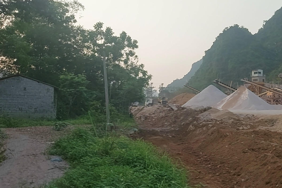 Ghi nhận của PV ngày 26/7, con đường dẫn vào mỏ đá Thung Nai có nhiều xe tải chở đá qua lại, đường đi xuất hiện nhiều ổ voi, ổ gà, bụi phủ trắng xoá cây cối 2 bên đường. Theo quan sát, mỏ đá Thung Nai chỉ cách nhà người dân sinh sống khoảng 100m, hoạt động nghiền đá, vận chuyển đá diễn ra rầm rộ, đứng từ nhà người dân có thể nghe thấy rõ tiếng nghiền đá ầm ầ, rất khó chịu.