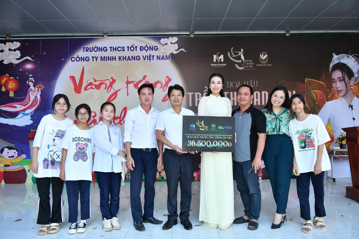 Đại diện đơn vị trao quà tặng, bà Nguyễn Thùy Dương, Giám đốc công ty Minh Khang, đại diện BTC Miss Peace Vietnam chia sẻ, với mục đích tạo không khí vui tươi, phấn khởi cho các em học sinh, trong đó có các em hoàn cảnh khó khăn nỗ lực vươn trong học tập, góp phần động viên các em bước vào năm học mới, một mùa Trung thu vui vẻ và bổ ích.