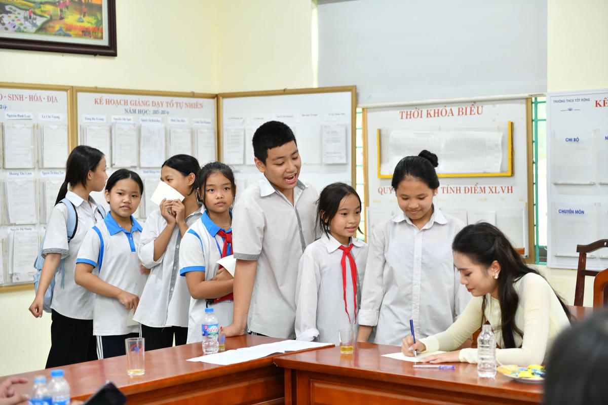 Nhân dịp tết Trung thu 2023, trường THCS Tốt Động (Chương Mỹ, Hà Nội) vừa tổ chức chương trình làm cỗ tết Trung thu và trao quà cho các em học sinh có hoàn cảnh khó khăn, nỗ lực vươn lên đạt kết quả tốt trong học tập. Chương trình có sự đồng hành của BTC Miss Peace Vietnam, Hoa hậu Miss Peace Vietnam 2022 Trần Thị Ban Mai.