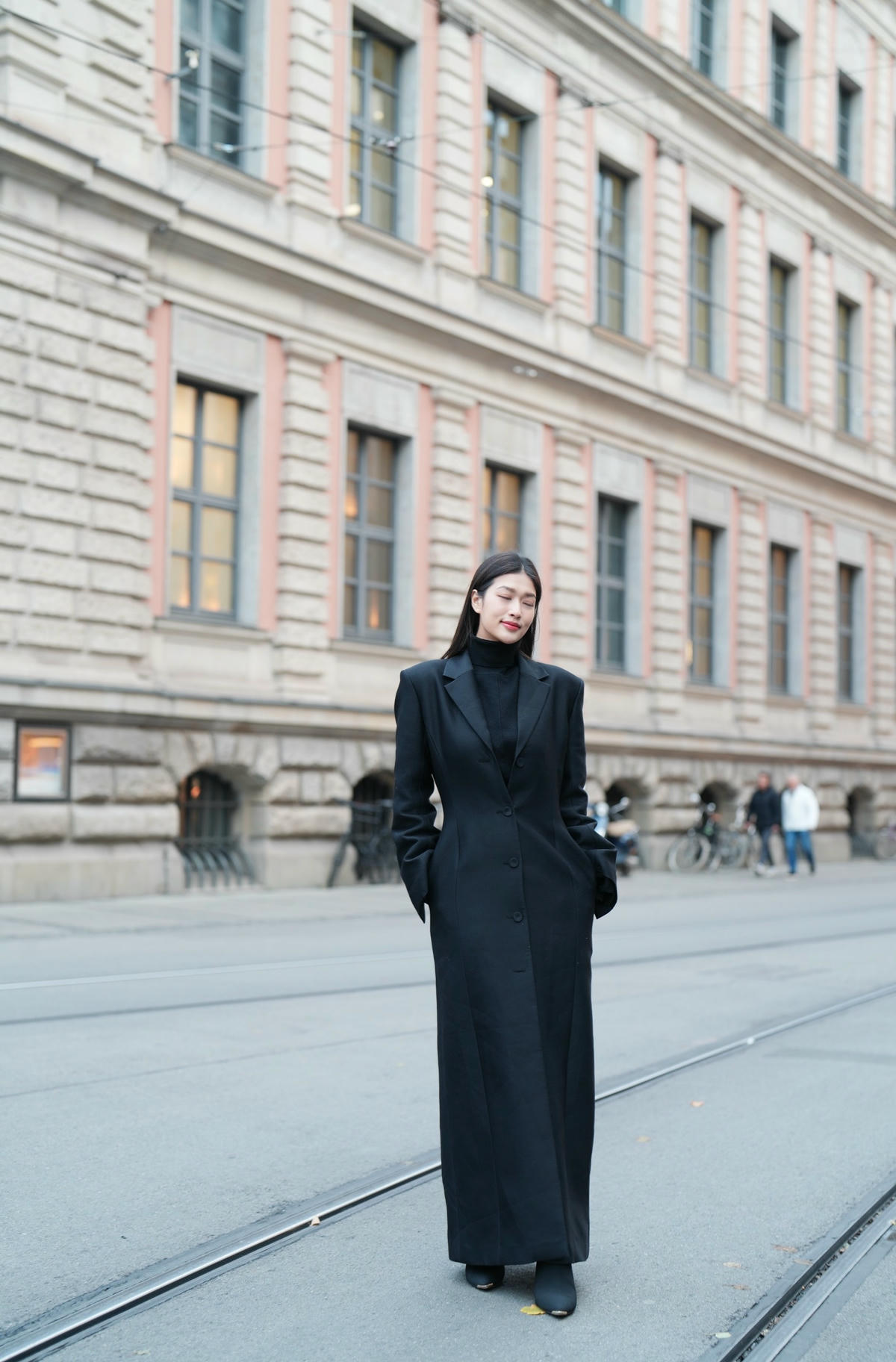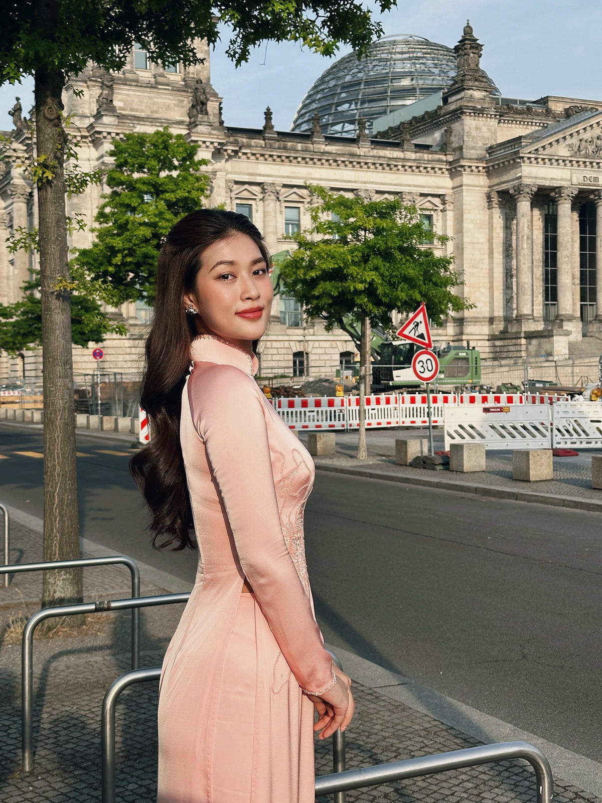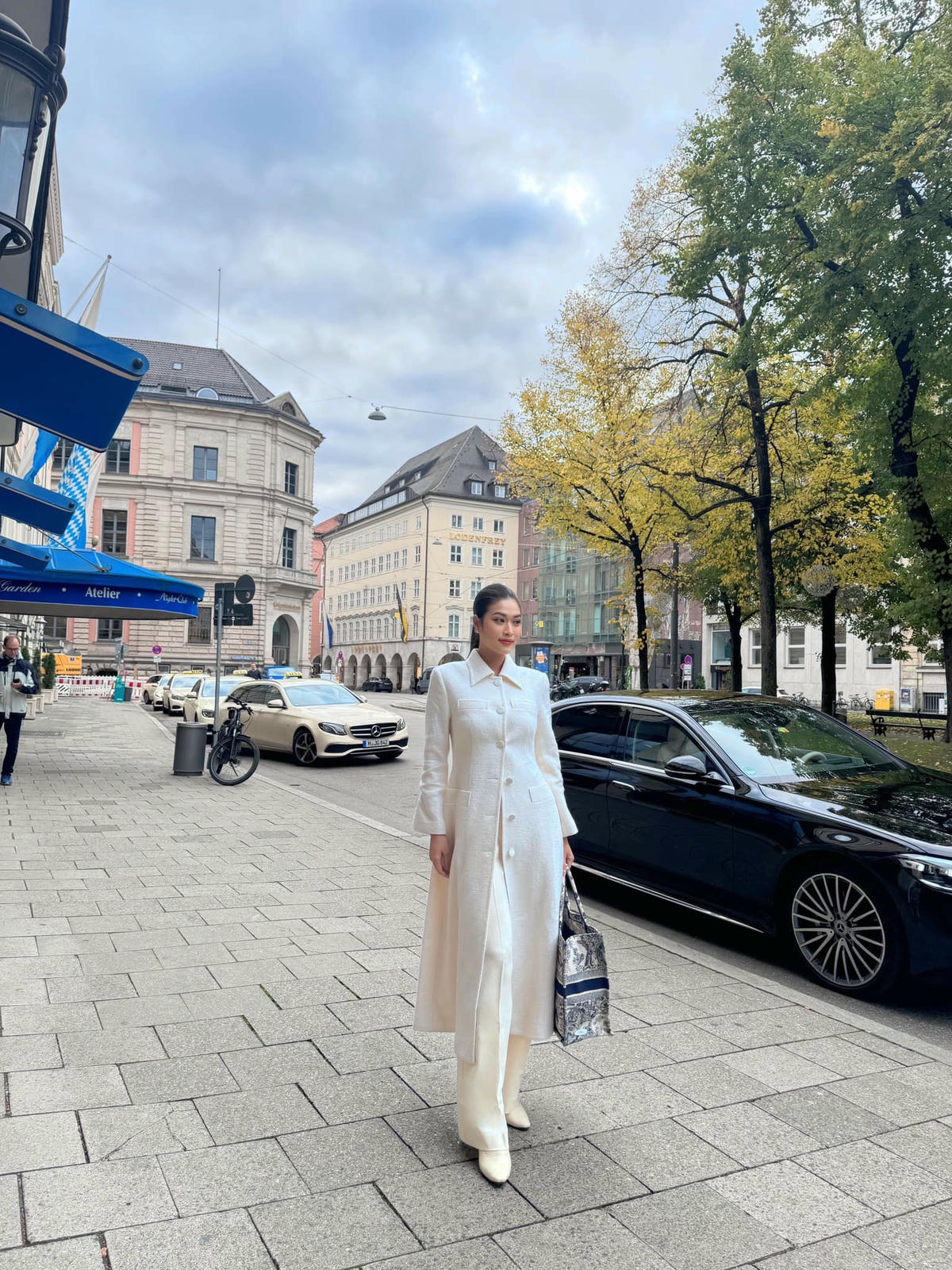 Hoa hậu Đoàn Thiên Ân diện thiết kế áo khoác dáng dài tại trời Âu