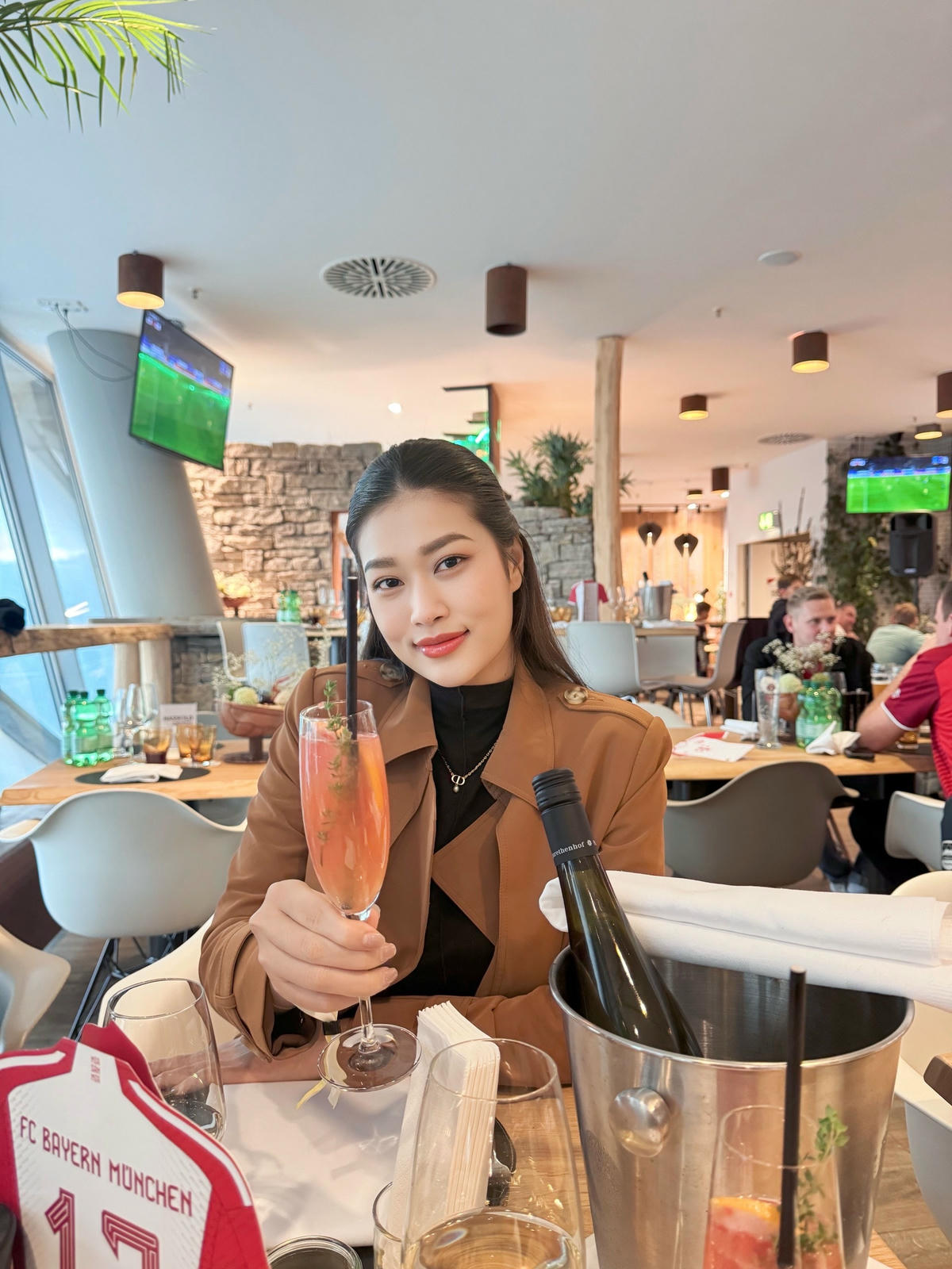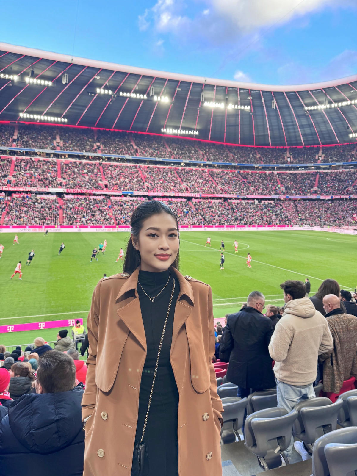 Gần đây, Hoa hậu Thiên Ân bất ngờ vắng mặt trong một số sự kiện. Theo chia sẻ từ quản lý của Thiên Ân, nàng Hậu đã tạm rời Việt Nam trong một thời gian để hoàn thành công việc tại nước Đức.Sau khi vừa đến Đức, nàng Hậu cùng các cộng sự ghé thăm và làm việc với một thương hiệu mỹ phẩm thuần chay của quốc gia.Cũng trong khuôn khổ chuyến đi, Đoàn Thiên Ân còn có cơ hội xem trực tiếp trận bóng đá giữa FC Bayern Munich và 1. FC Heidenheim.Chia sẻ loạt hình ảnh xinh đẹp “check-in” trên khán đài, Đoàn Thiên Ân bày tỏ sự phấn khích sau trận bóng đá.Ngoài thời gian làm việc, Đoàn Thiên Ân cũng kết hợp tham quan, chụp ảnh kỷ niệm và bày tỏ sự yêu mến với cảnh đẹp cùng những công trình, dãy phố đặc trưng của châu Âu.Trong lần xuất hiện tại Đức, Hoa hậu sinh năm 2000 chọn những thiết kế áo khoác dáng dài không chỉ để giữ ấm mà còn giúp cô tăng thêm độ sang trọng, thanh lịch. Nhiều người hâm mộ còn thích thú gọi nàng hậu với biệt danh mới khi diện mạo sang chảnh chẳng khác “tổng tài”. Được biết, đây không phải là lần đầu tiên Hoa hậu Đoàn Thiên Ân có chuyến công tác tại Đức. Trước đó vào tháng 6, cô đã đặt chân đến quốc gia này.Tại đây, người đẹp 23 tuổi cũng tận dụng cơ hội để góp phần quảng bá nét đẹp văn hóa, bản sắc dân tộc Việt Nam thông qua chiếc áo dài và nón lá.Sau chuyến đi, Thiên Ân cũng được truyền thông săn đón nhiệt tình khi xuất hiện trên trang bìa của loạt bài báo, tạp chí nước ngoài.