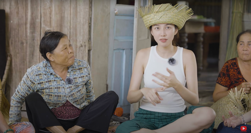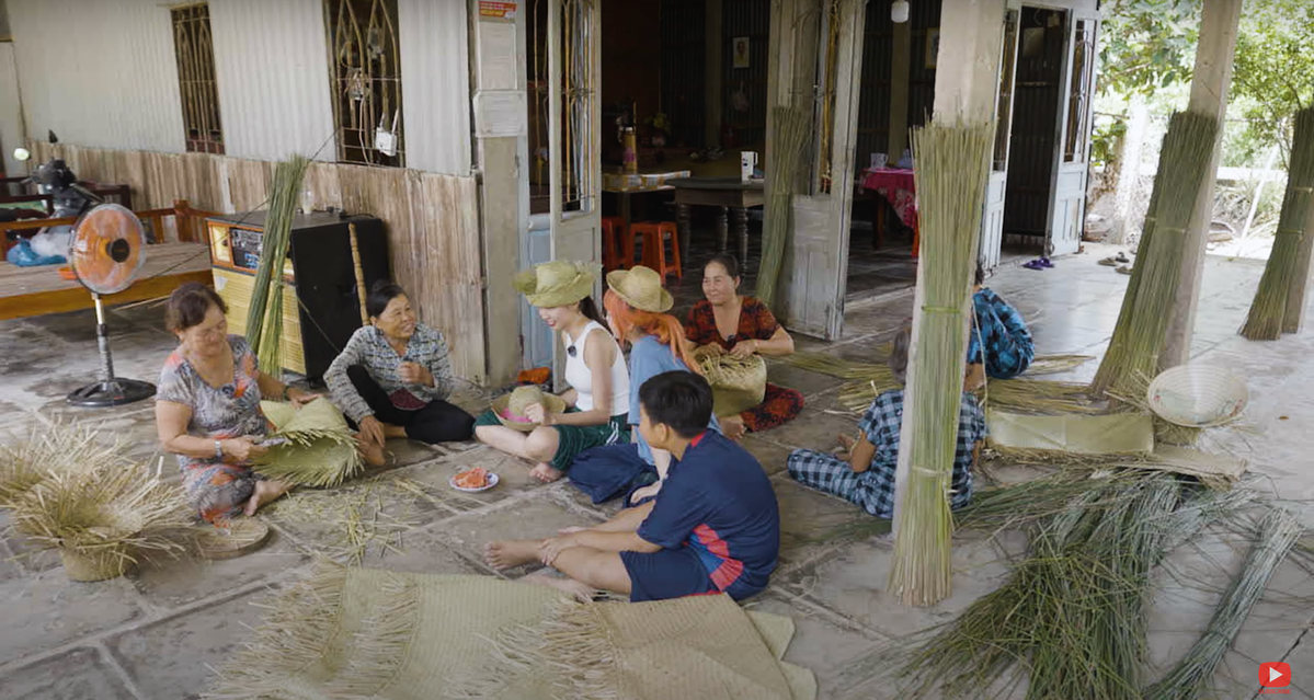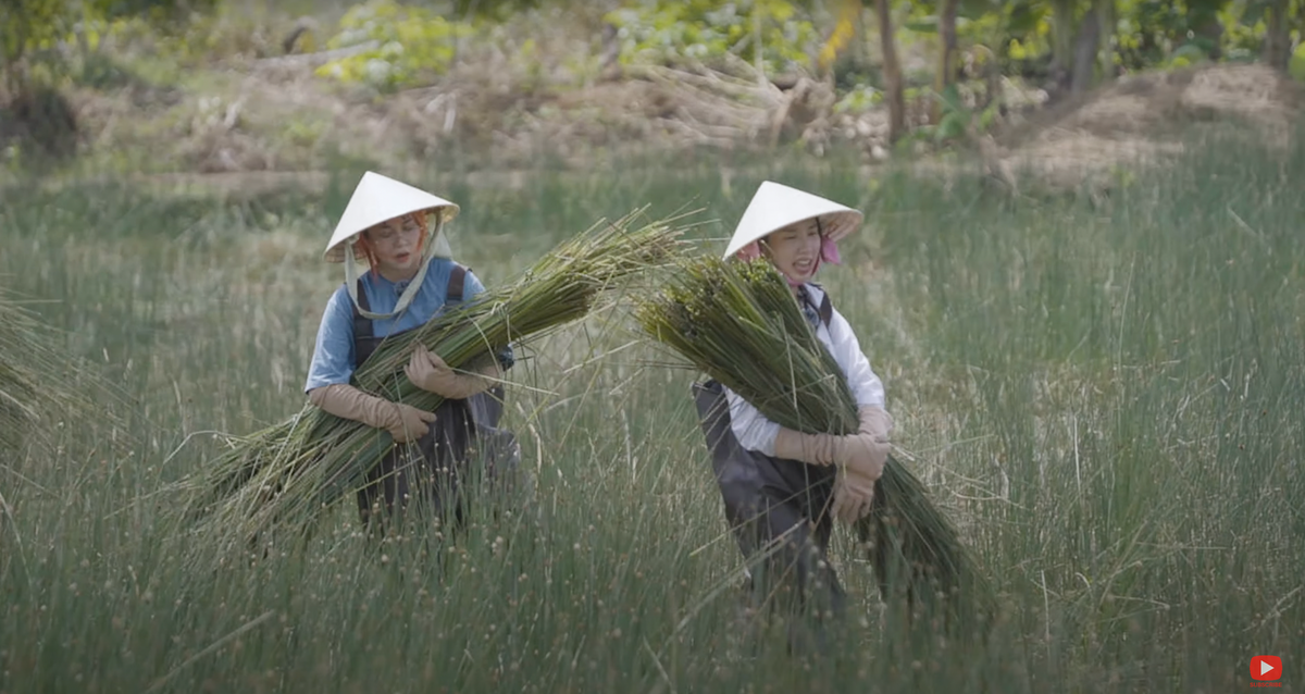 Hai cô gái vốn chỉ xuất hiện trước ống kính đã lột xác trở thành nông dân. Dù gặp khó khăn trong bước đầu, Thùy Tiên và MisThy với sự giúp sức của người dân địa phương đã thu hoạch được những bó cỏ bàng, sơ chế và đan bàng.
