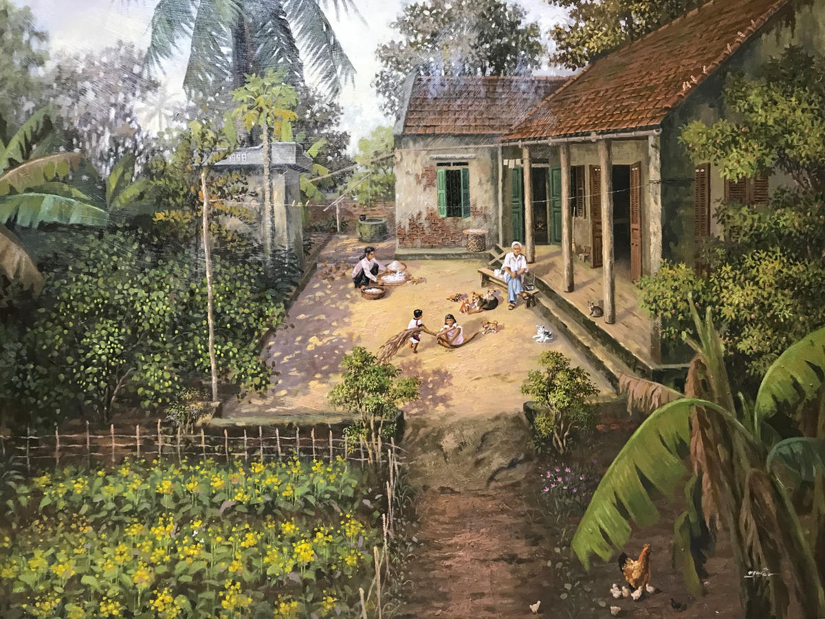 Qua nét vẽ sáng tạo, đầy xúc cảm, những vẻ đẹp xưa cũ, trong trẻo, bình yên của làng quê Bắc Bộ hiện lên gần gũi, thân thương khiến người xem như lắng đọng về cuộc sống bình yên không ồn ào, vội vã.