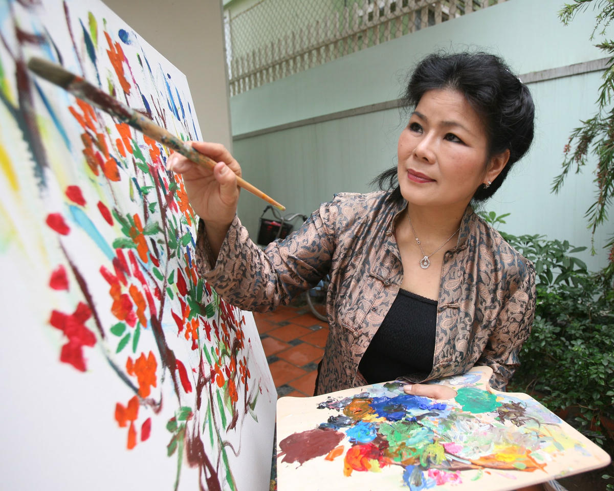 2. Trong biệt thự “Hoa sen trắng” ở mạn Tây Hồ (Hà Nội), họa sĩ Văn Dương Thành bày nhiều tranh - đó là không gian hội họa rất riêng của bà. Ở đó, những bức tranh khổ lớn treo kín các bức tường. Những bức tranh nhỏ điểm xuyết. Trên giá vẽ, những tác phẩm đang hoàn thành. Năm nào bà cũng triển lãm dăm ba cuộc, nhiều cuộc được tổ chức ngay tại địa chỉ này. Vì vậy, biệt thự Hoa sen trắng trở thành điểm đến thân quen của nhiều người yêu mỹ thuật.