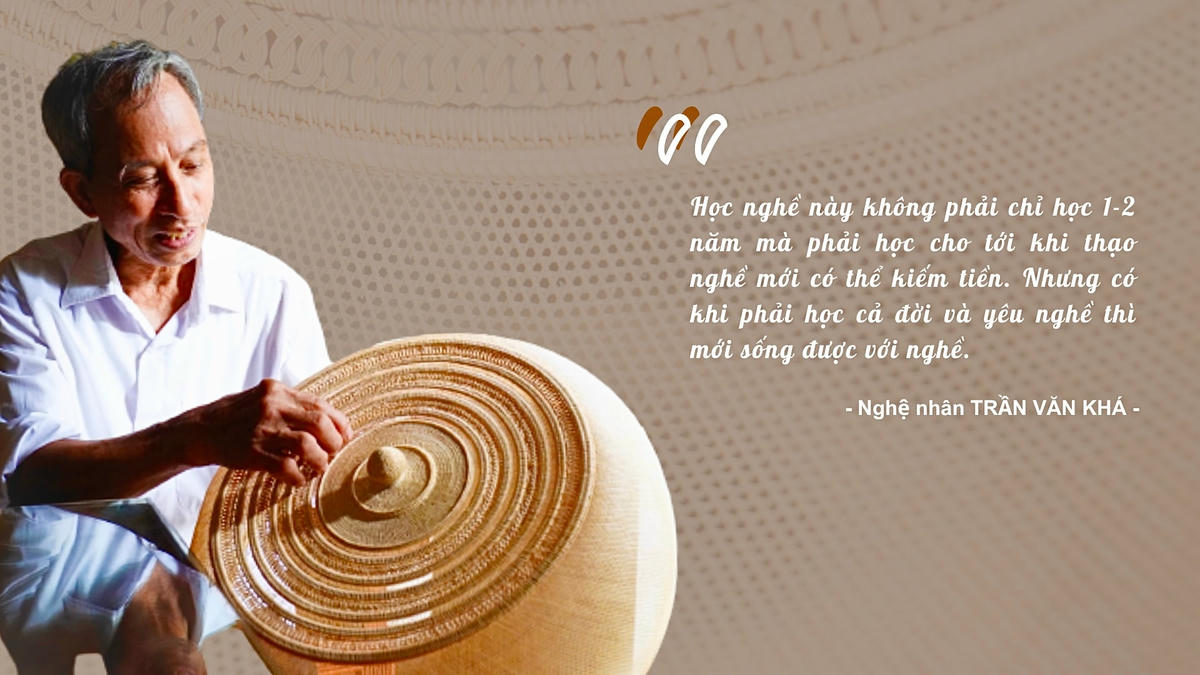 Ông Khá kể, nghề mây tre đan của làng đã nuôi sống bao thế hệ người con sinh ra ở đây nên gia đình ông trân trọng nghề lắm. Năm 1969, sau khi xuất ngũ trở về địa phương, ông lập gia đình và bắt đầu làm mây tre đan cùng vợ. Mặc dù đôi bàn tay có ngón bị thương tật sau cuộc chiến nhưng không thể ngăn cản tình yêu của ông với nghề.